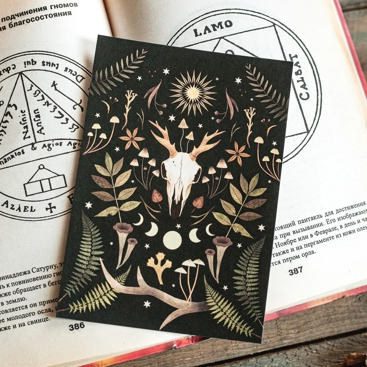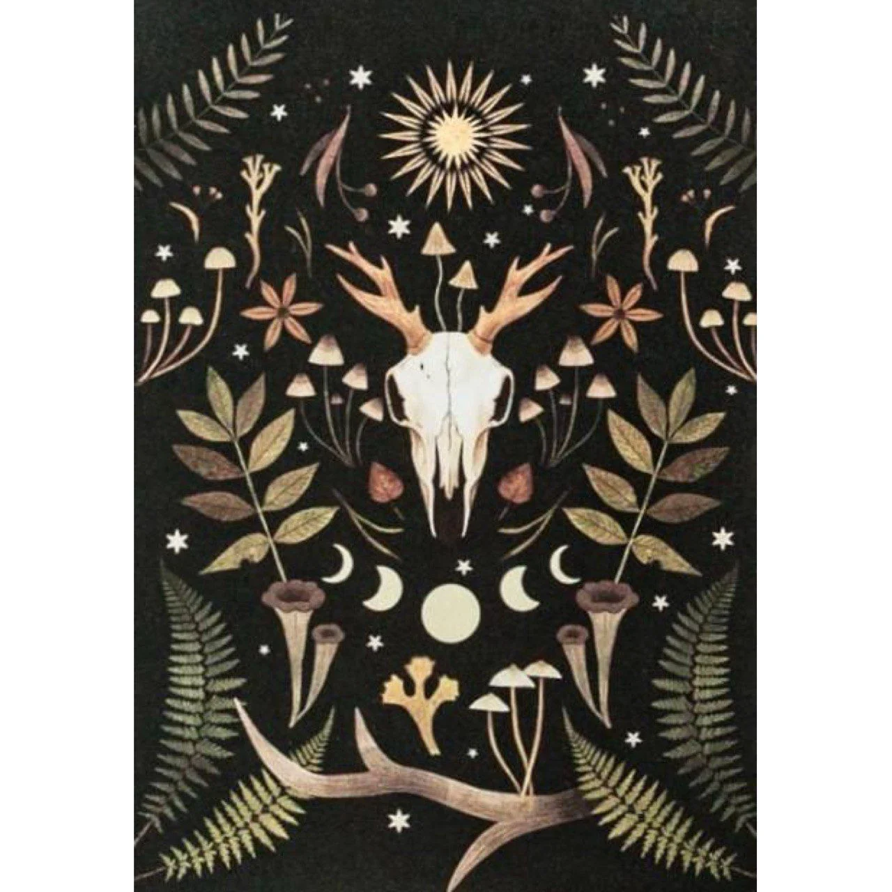 Авторский мини-постер «Череп оленя», светлая, иллюстрация создана талантливой художницей из Санкт-Петербурга Дворниковой Александрой.