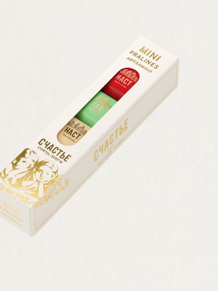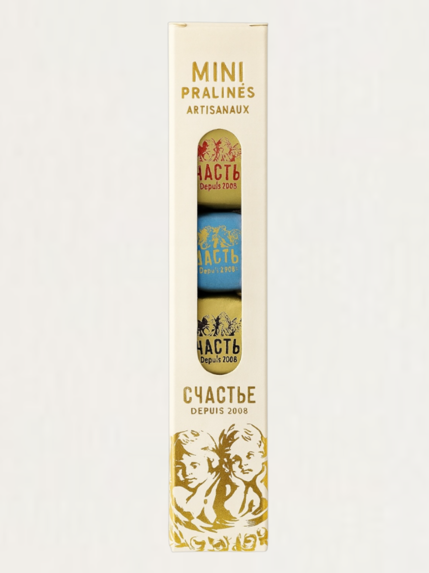 Набор из 6 мини-пралине: с ванилью и фундуком в горьком шоколаде 1 шт, с карамелью и грецкими орехами в молочном шоколаде 1 шт, с малиной, розеллой и розовым перцем в молочном шоколаде 1 шт, с фисташками и базиликом в молочном шоколаде 1 шт, с молотыми кофейными зернами в горьком шоколаде 1 шт, с лавандой, черникой и семенами чиа в молочном шоколаде 1 шт. Конфеты упакованы в нарядную коробочку и станут отличным дополнением к подарку.