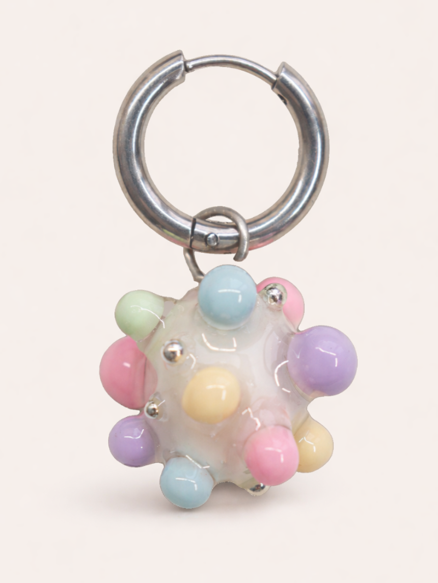 Моносерьга ручной работы «Пузырики», разноцветная, из полимерной глины бренда Pet Polly Pocket.