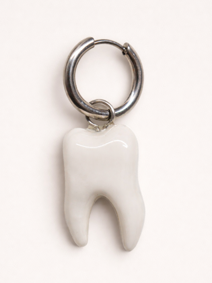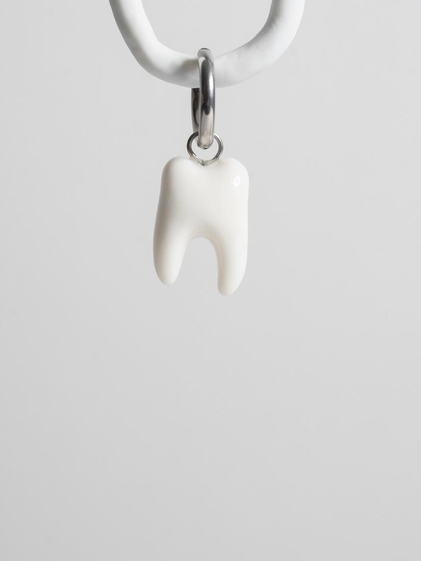 Моносерьга ручной работы «Зуб» из полимерной глины бренда Pet Polly Pocket.
