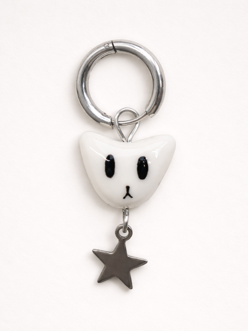 Моносерьга Котик с подвеской звёздочкой, полимерная глина