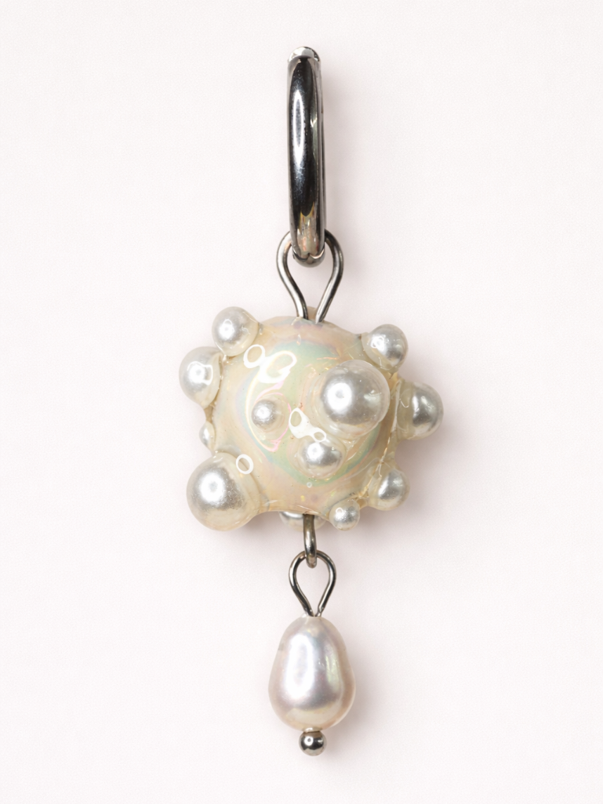 Моносерьга ручной работы Pet Polly Pocket «Пузыри с жемчужинкой», бежевая, полимерная глина