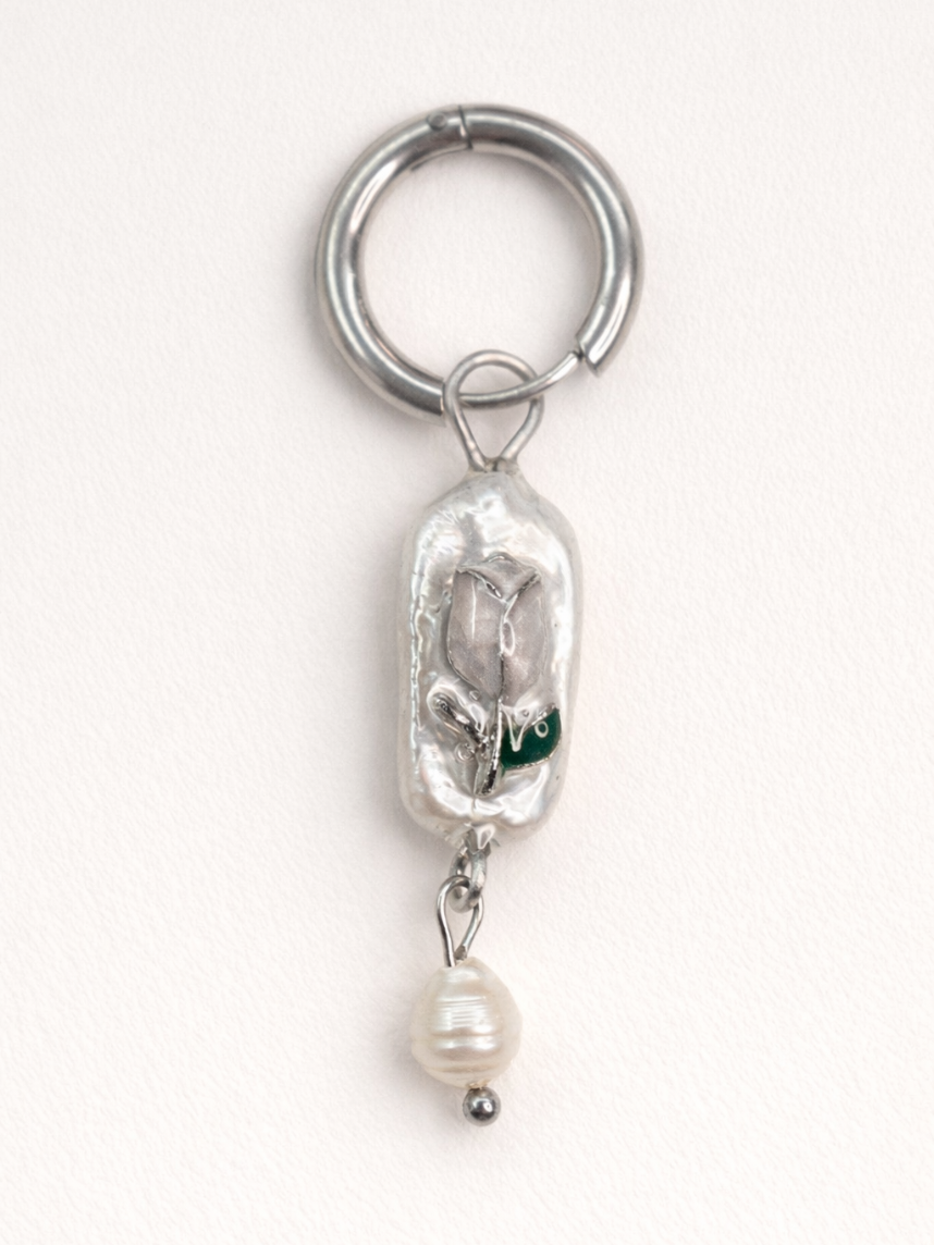 Моносерьга ручной работы «Тюльпан с жемчужинкой» из полимерной глины бренда Pet Polly Pocket.