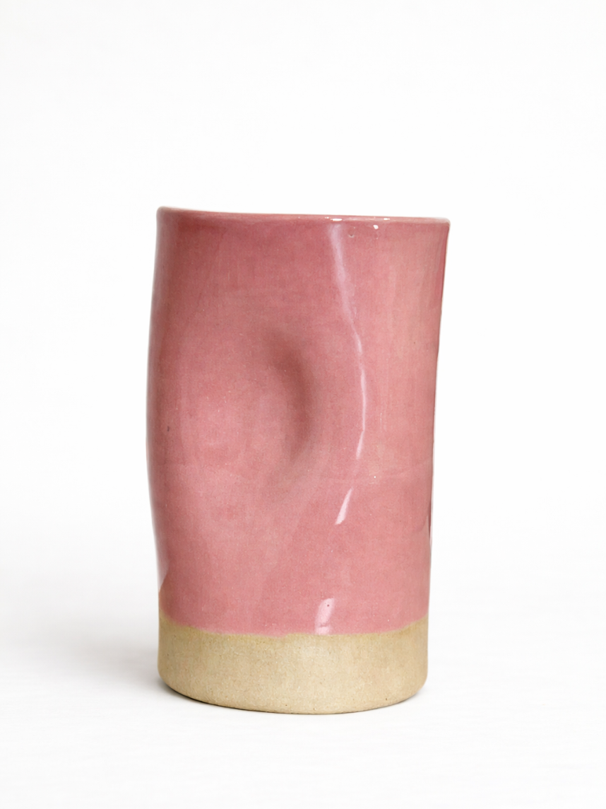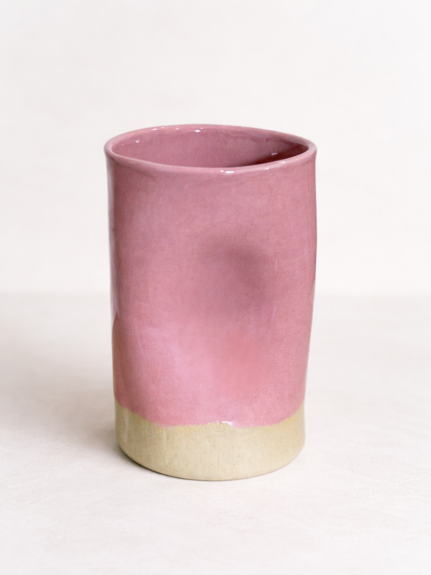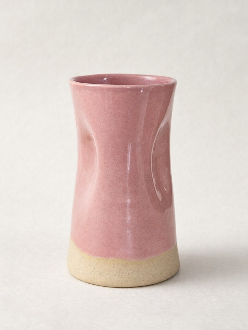 Мятый стакан ручной работы розовый, керамика, 200 мл
