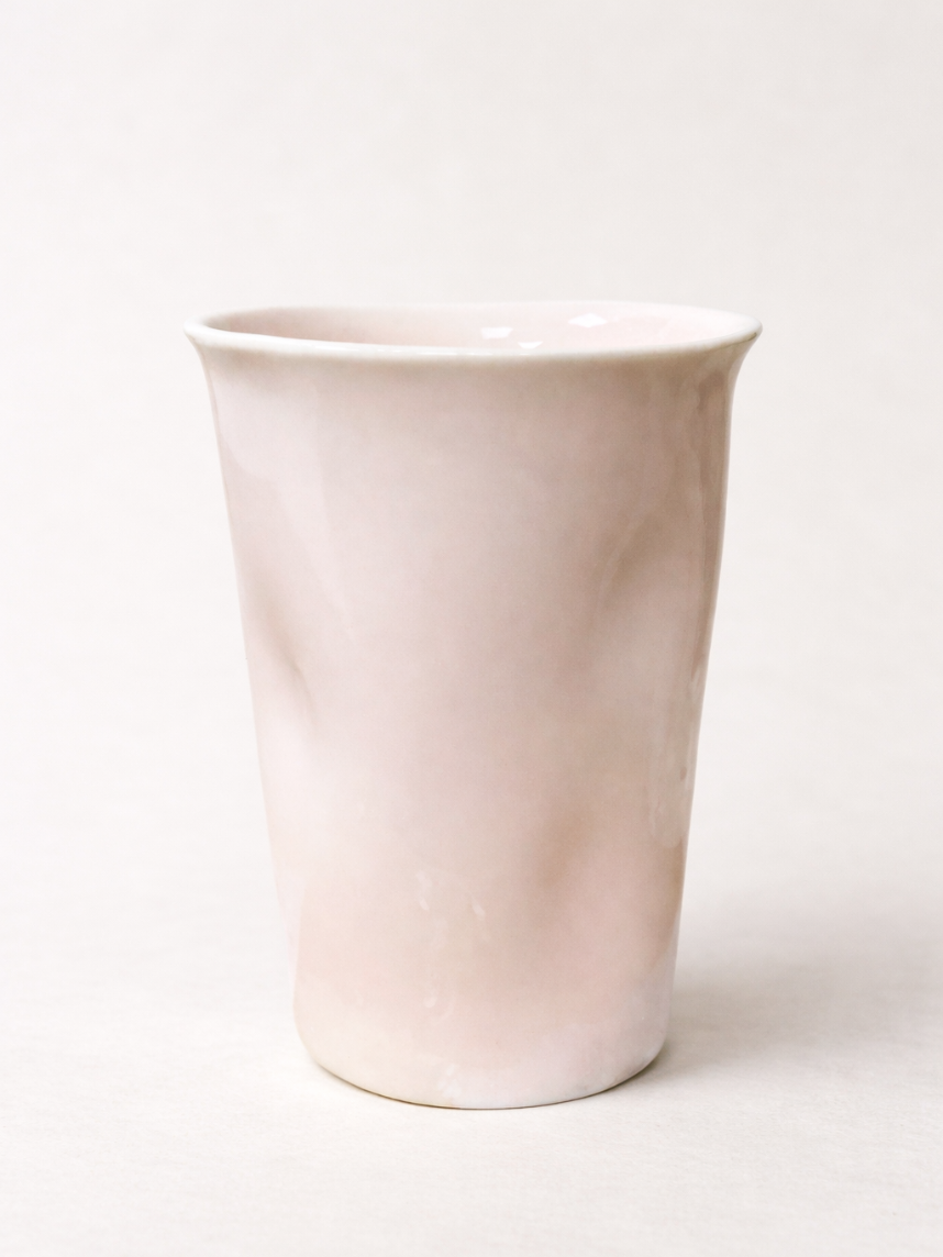 Мятый стакан ручной работы светло-розовый, керамика, 200 мл