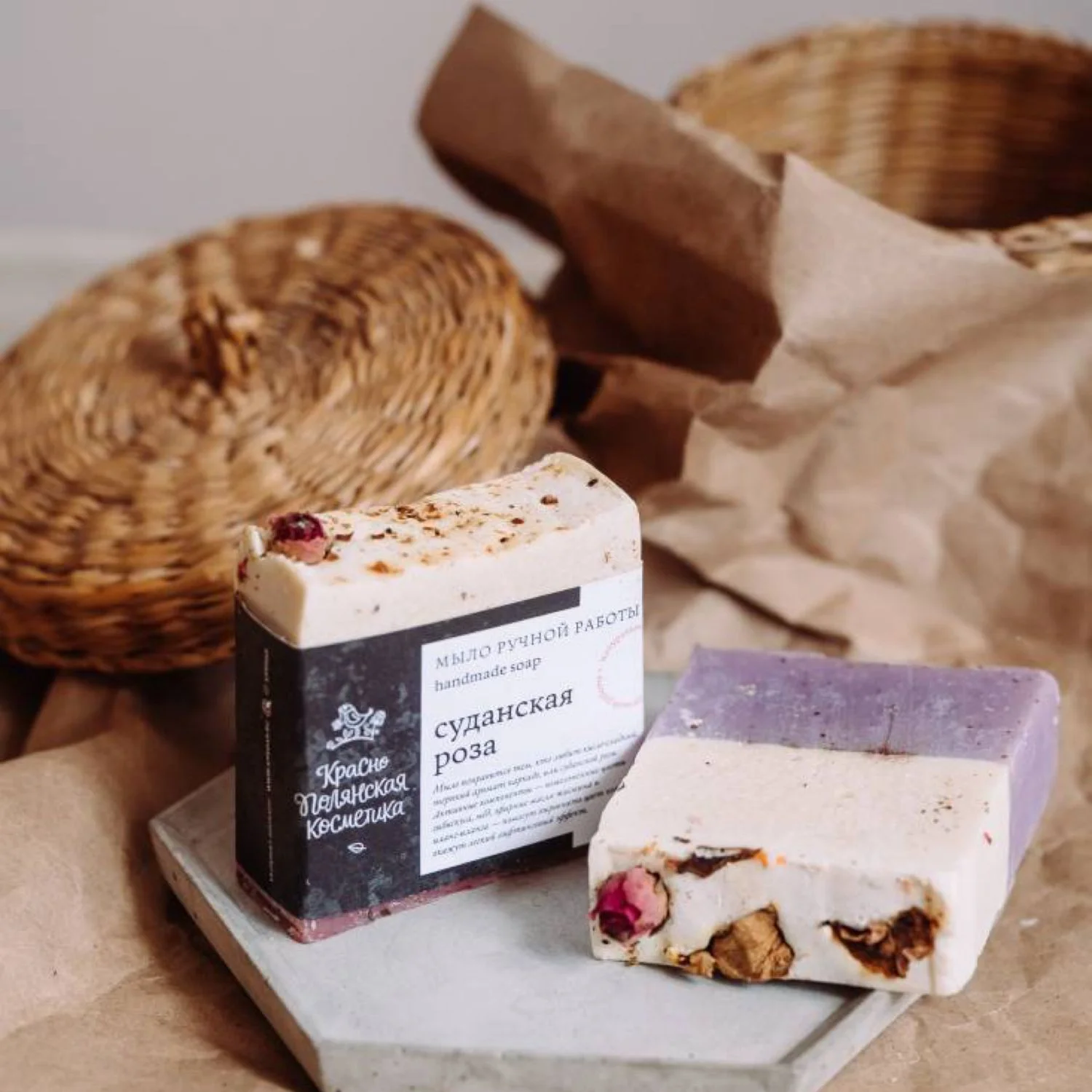 Мыло «Суданская роза» — это натуральный продукт, сваренный по классическому рецепту мыловарения. Оно содержит измельчённые цветы гибискуса, мёд, эфирные масла жасмина и иланг-иланга, которые делают кожу нежной, как лепестки роз.