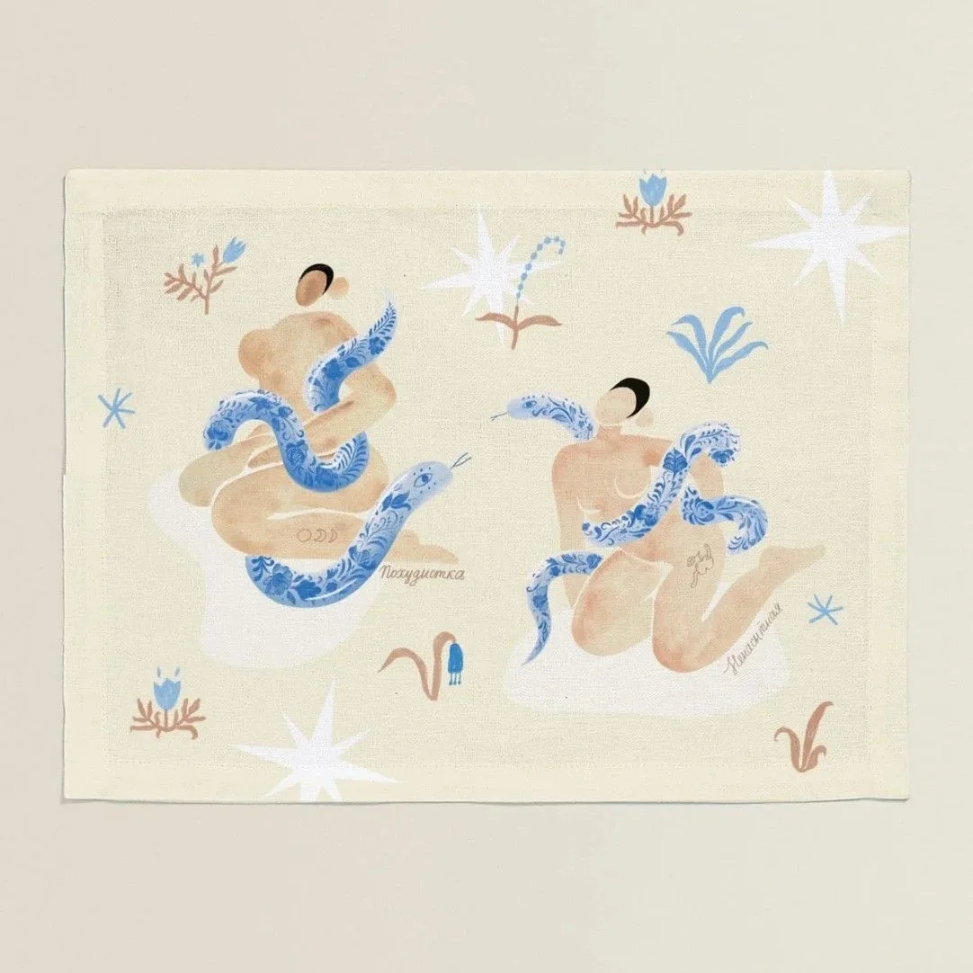 Салфетки под столовые приборы "Девочки" с символом года. В наборе 2 шт. 100% хлопок, цифровая печать активными чернилами.