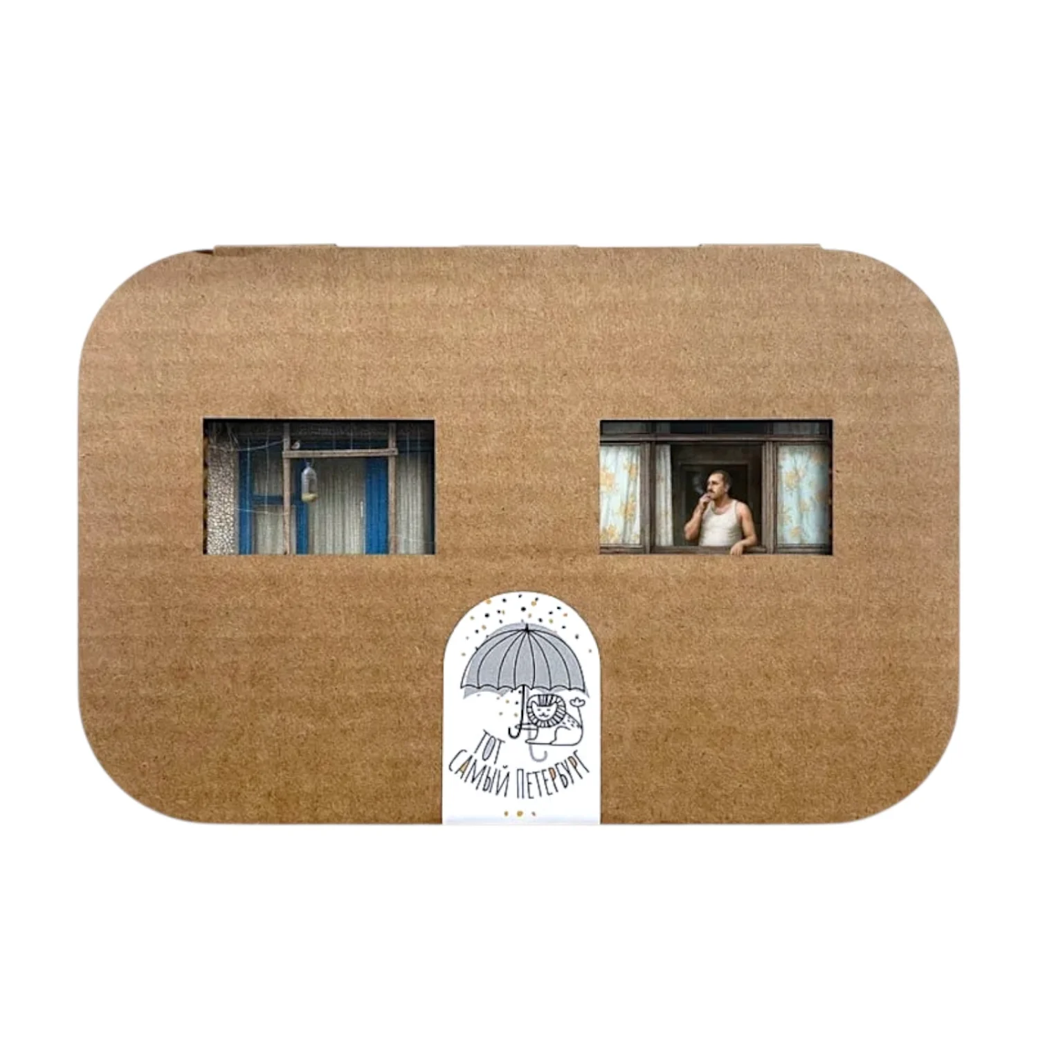 Плоская картонная упаковка с ложементом под каждый магнитик и с окошками на крышке под некоторые элементы - готовый подарок для любителей настоящего города