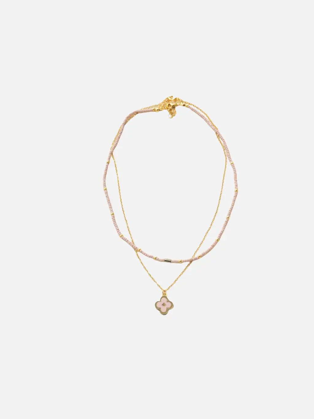 Чокер изготовлен из высококачественного бисера розового цвета с ручной росписью, что придает ему особую уникальность. Колье на цепочке с кулоном в форме клевера станет нежным акцентом на вашей шее.