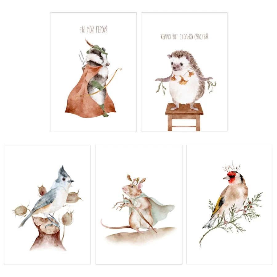 Набор открыток Наталья Филипович «Лесные зверята» 5 шт.