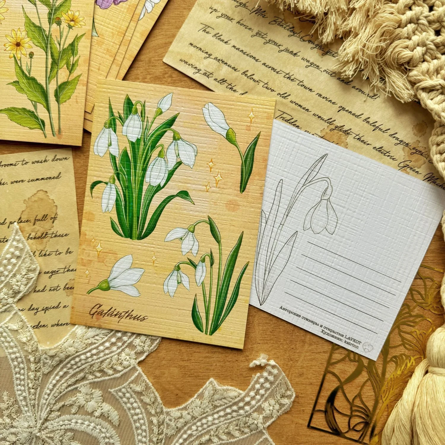 •У каждой открытки почтовый оборот, который соответствует лицевой стороне (то есть, если на открытке ромашки, то и на обороте будут они)