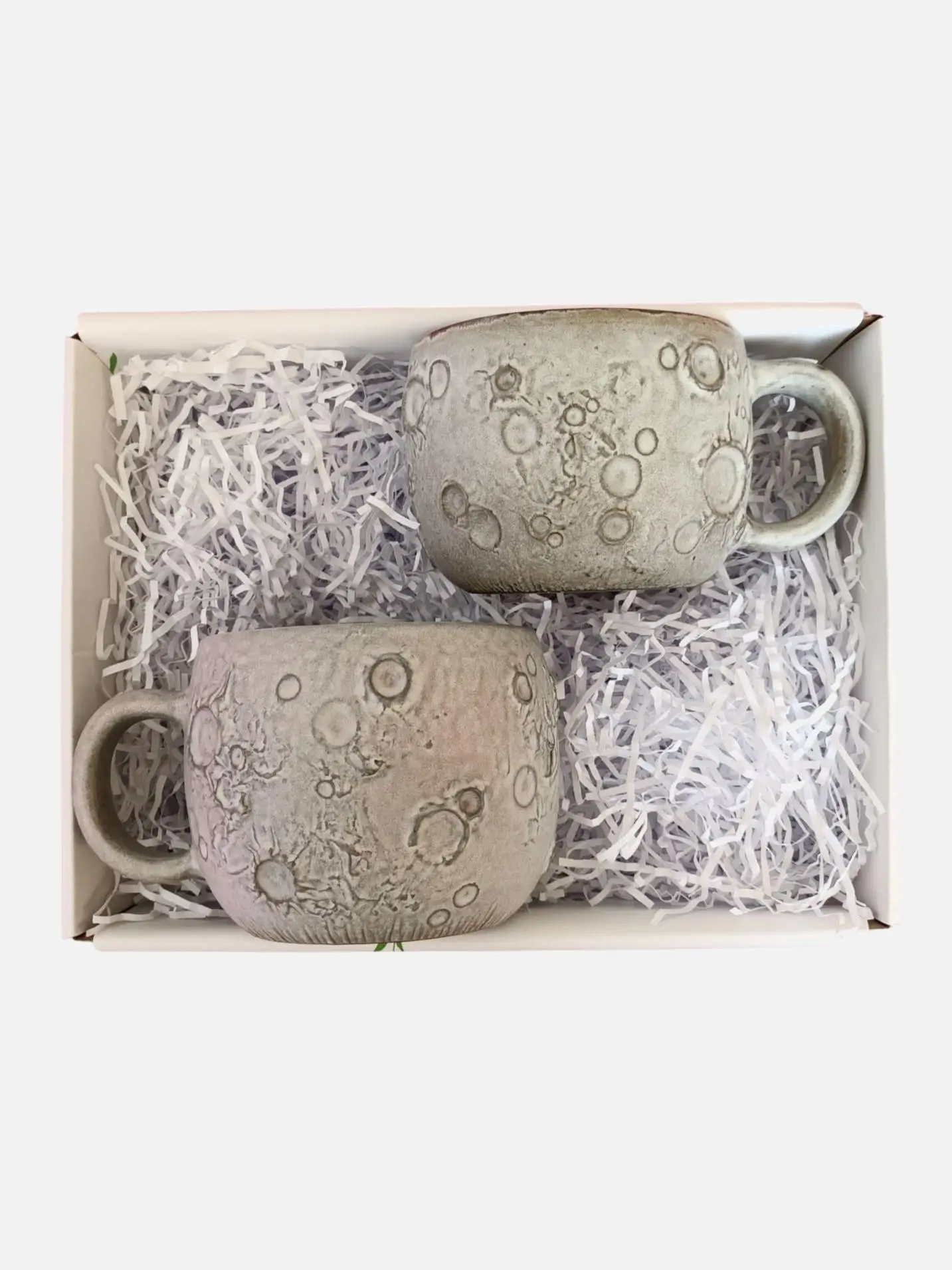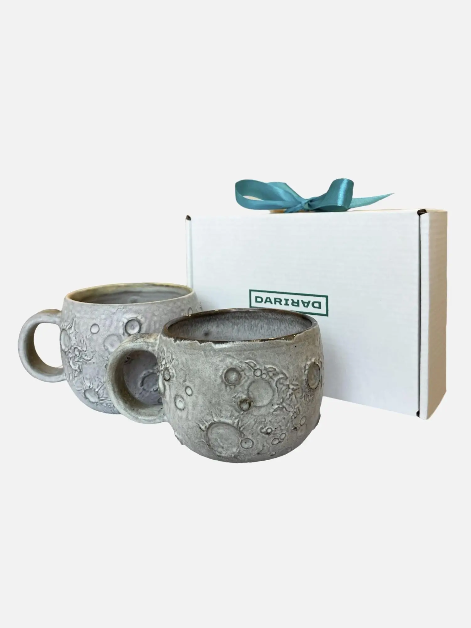 Представляем эксклюзивный подарочный набор кружек ручной работы от бренда Pinkfox.pots, выполненных в уникальном дизайне лунной поверхности. Оригинальные кружки прекрасно дополнят интерьер и станут прекрасным подарком для любителей космоса.