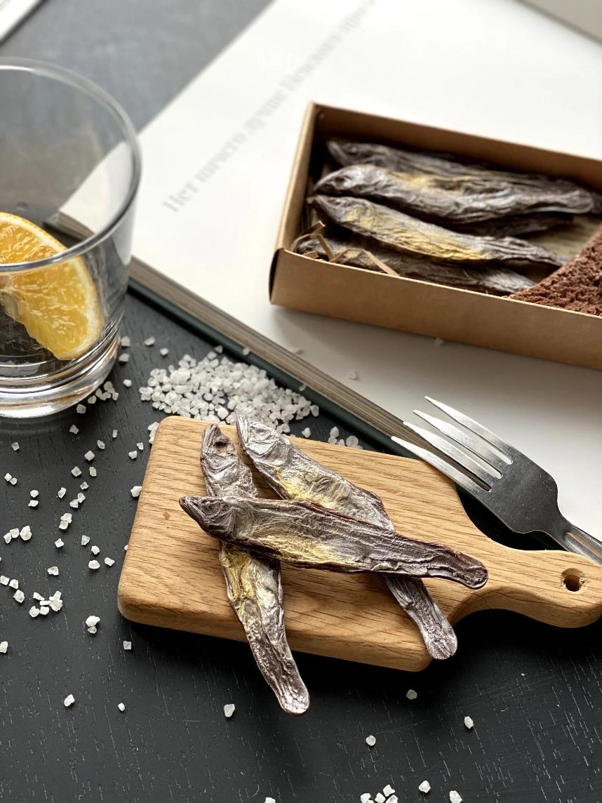 В наборе представлено 8 рыбок, зубчик чеснока, бадьян и хлеб из молочного шоколада с кедровым орехом.