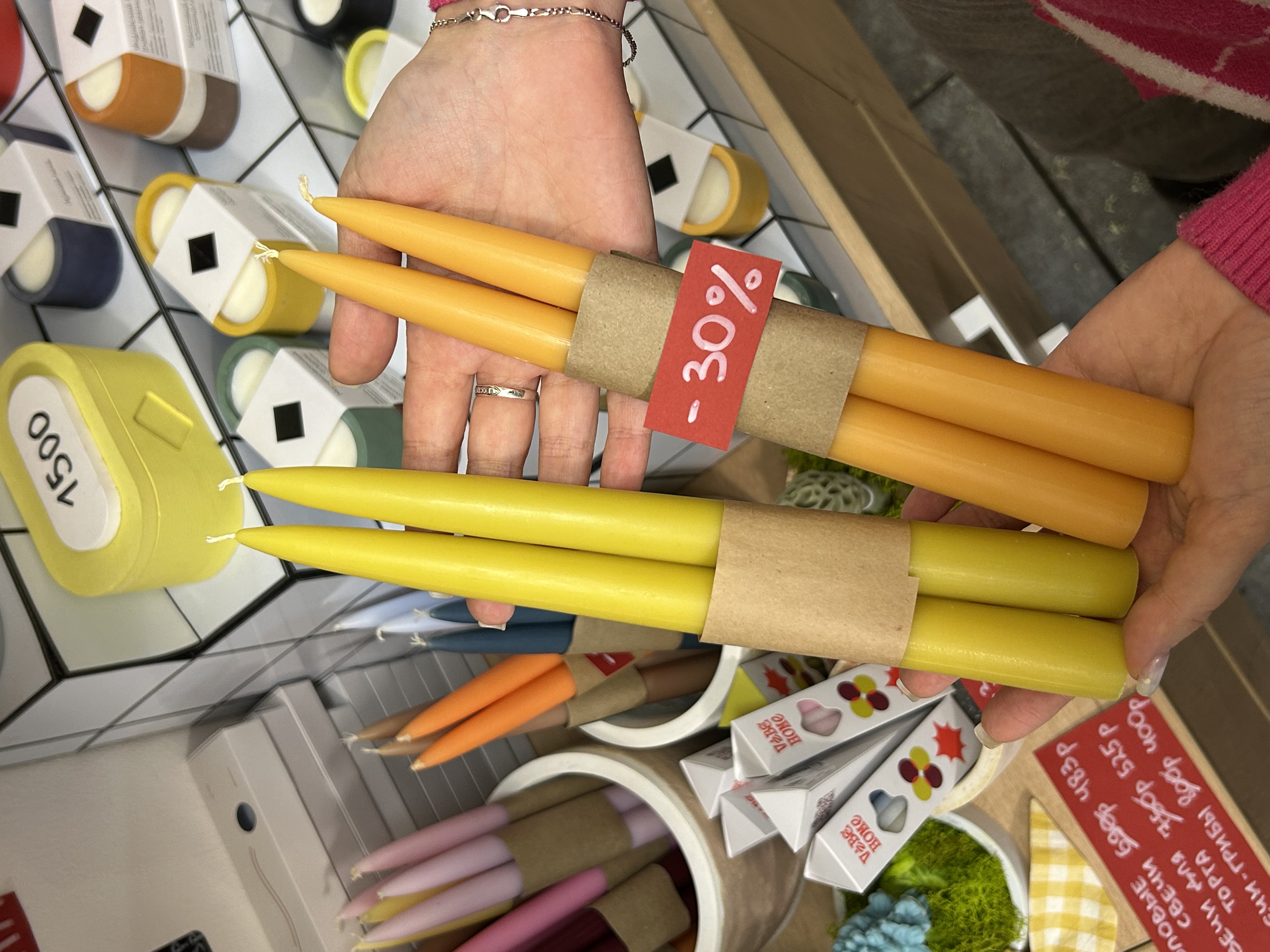 Диаметр одной свечи - 1,5 см. Высота свечи - 24 см.