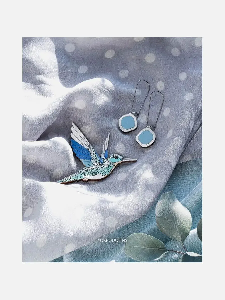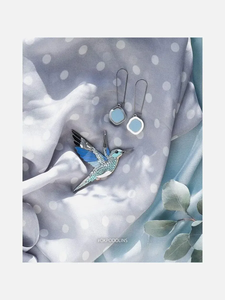 Набор брошь «Колибри» и серьги «Озёра» - это уникальный набор украшений, которые привлекут внимание своей изысканностью и неповторимым дизайном.