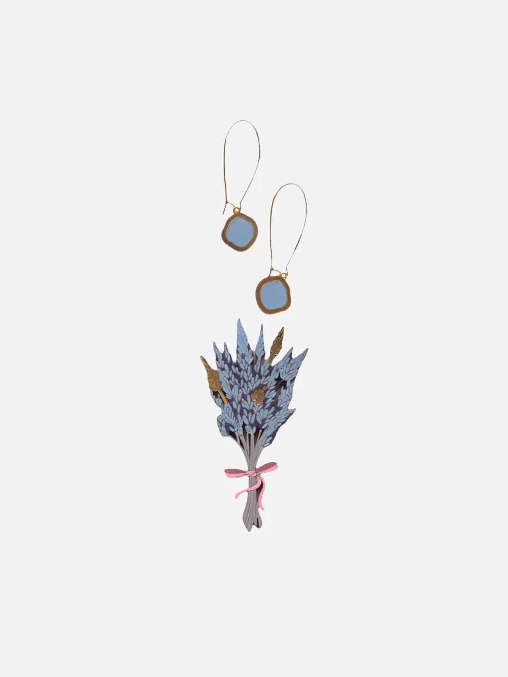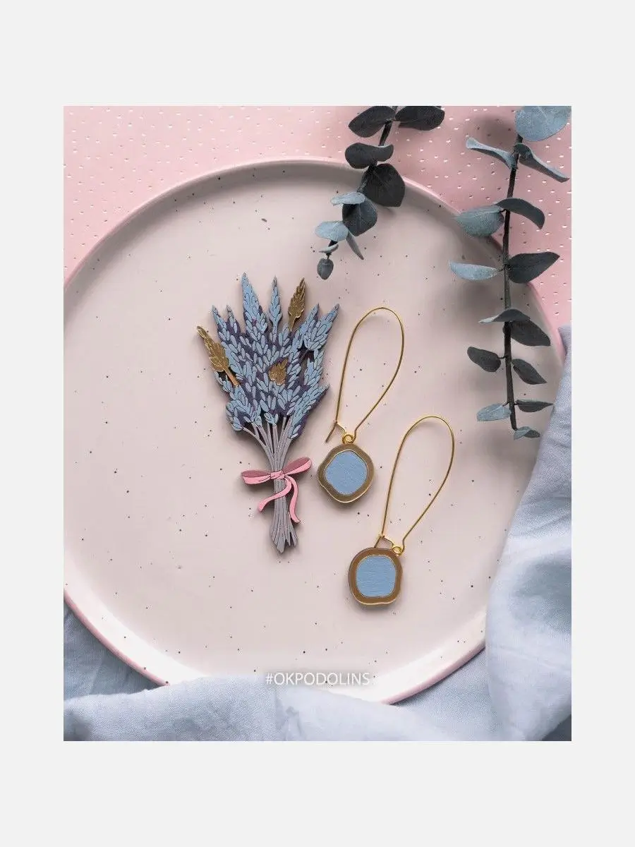 Набор украшений ручной работы брошь «Лаванда» и серьги «Озёра», голубой, дерево