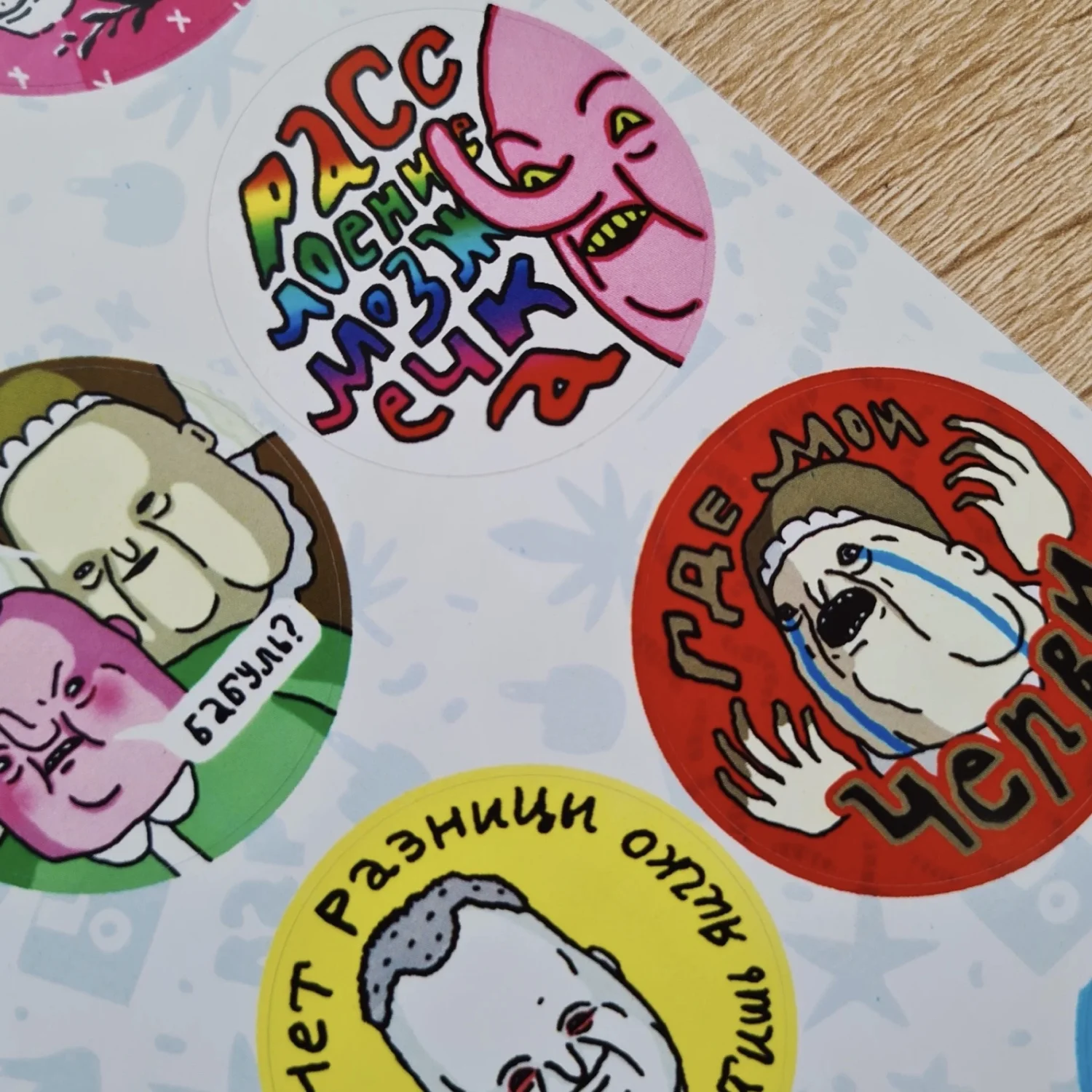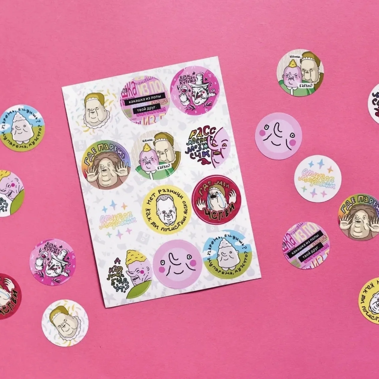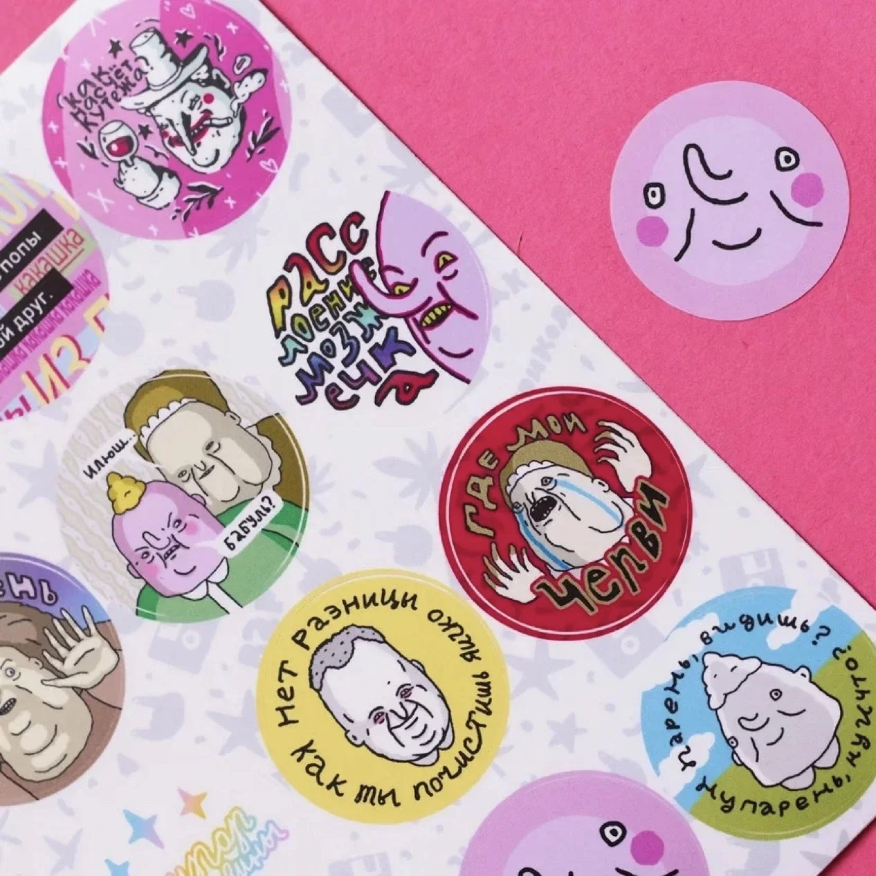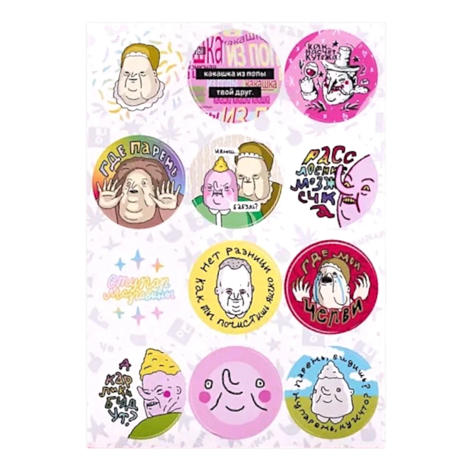 Виниловый стикерпак с иллюстрациями ШКЯ, формат А5. 12 круглых стикеров подарят вам необходимое количество уныния и апатии, а еще немного кутежа. Парень, Илюша, бабуля, карлики и Мистер Кутёж - если эти слова для вас не пустой звук, смело кладите стикерпак в корзину и будет вам счастье! Стикеры выполнены из виниловой плёнки, отлично крепятся на тетради, ежедневники, телефоны и ноутбуки. Всем вокруг сразу станет понятно, что у вас тонкое и специфическое чувство юмора, поэтому не стесняйтесь заклеить стикерами ШКЯ все доступные вам поверхности. Купить стикеры от ШКЯ - лучшее решение, если вы ищете подарок себе или такому же ценителю юмора Евы Морозовой и почитателю вселенной ШКЯ. Всем шуток, кайфа и яшпериц!