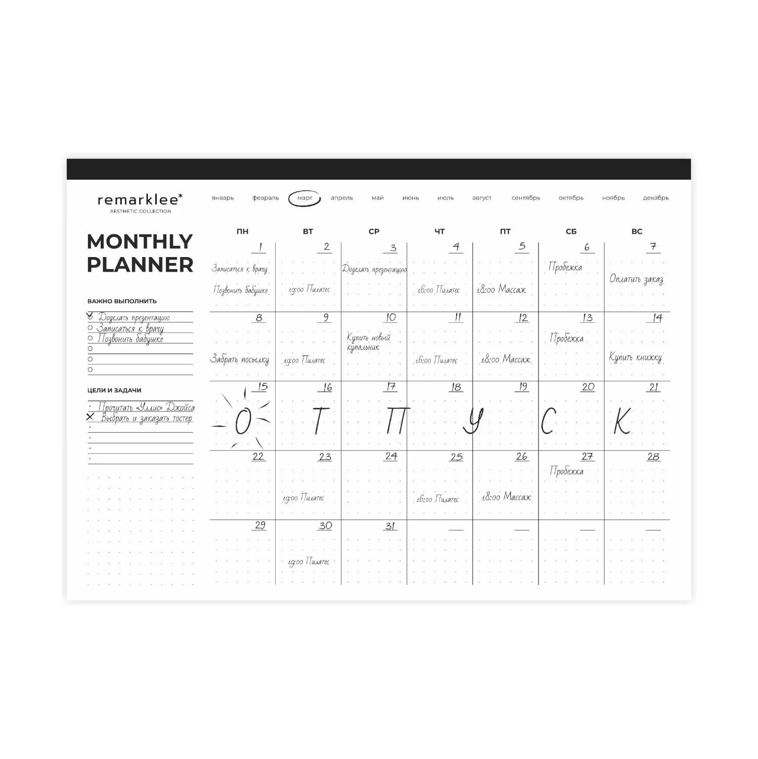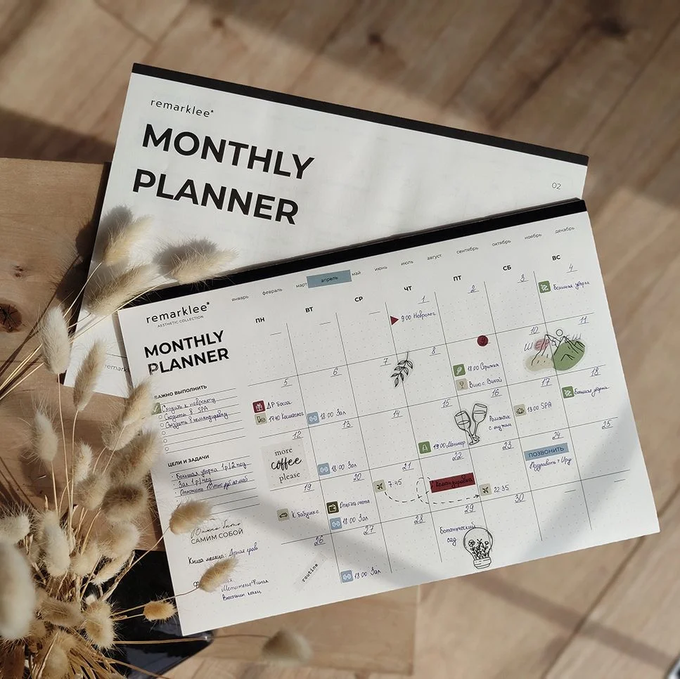 Этот удобный блокнот с отрывными листами прекрасно подойдет для планирования всего месяца. Он незаменим для тех, кто хочет иметь под рукой планы на как минимум месяц вперед.