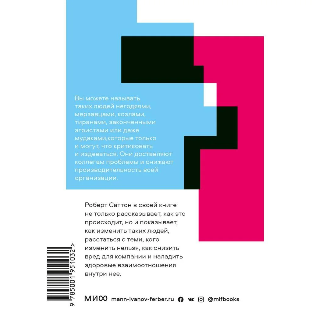 Книга «Не работайте с мудаками» - это практическое руководство в удобном формате покетбука, которое поможет вам научиться эффективно общаться с теми людьми, которые мешают вашей продуктивности. Автор Роберт Саттон раскрывает секреты того, как изменить деструктивное поведение коллег, а также научиться расстаться с теми, кого изменить нельзя. Вы узнаете, как снизить вред для компании и создать здоровые взаимоотношения в рабочем коллективе. Ваша компания заслуживает производительный и гармоничный коллектив, и эта книга поможет вам достичь этой цели. Приобретите Не работайте с мудаками и увидите, как рост производительности и результатов вашей компании не заставит себя ждать.