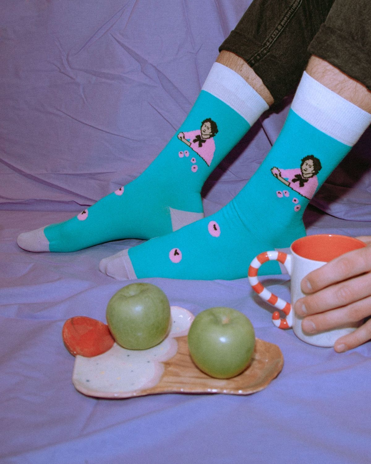 Носки «Девочка с персиками», р-р 38-41, бирюзовые