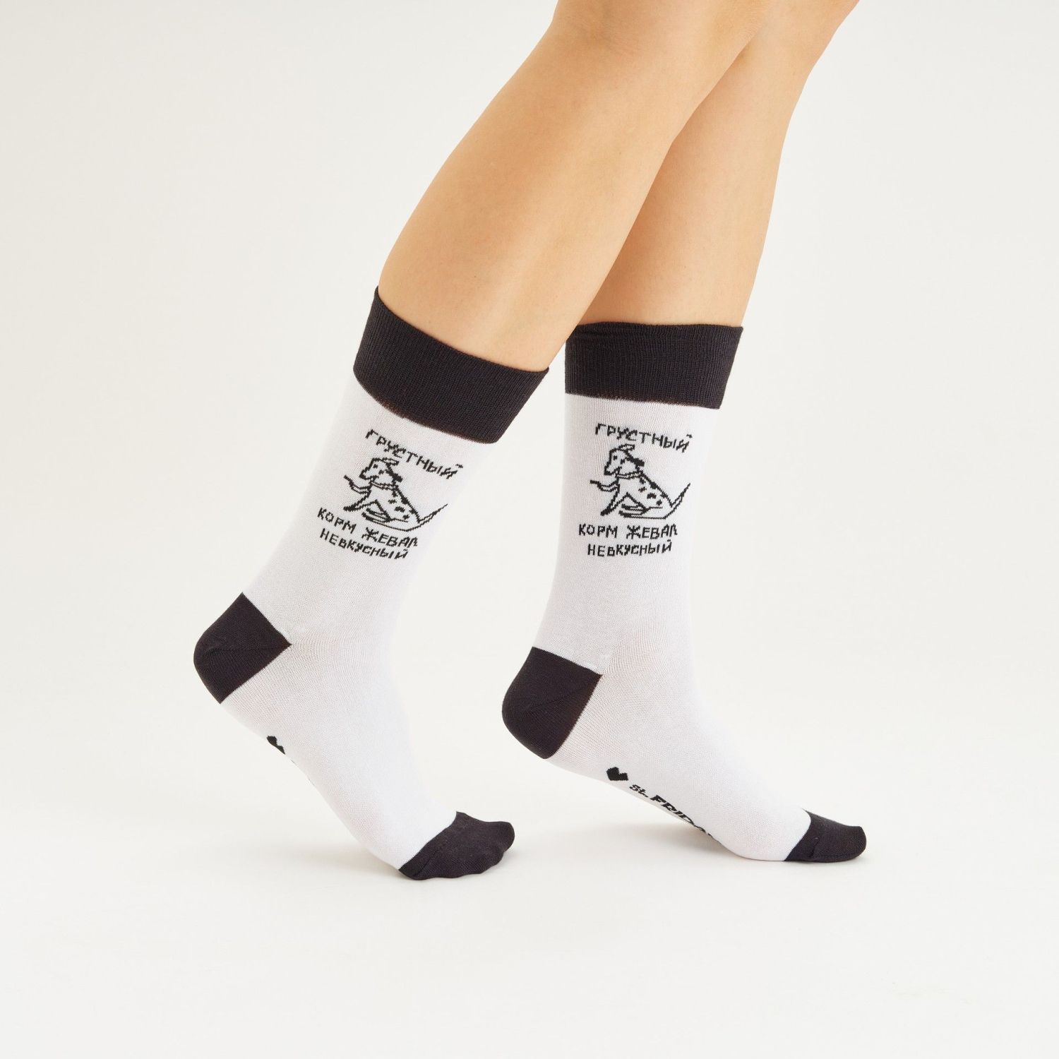 Носки «Грустный корм жевал невкусный», р-р 38-41, белые