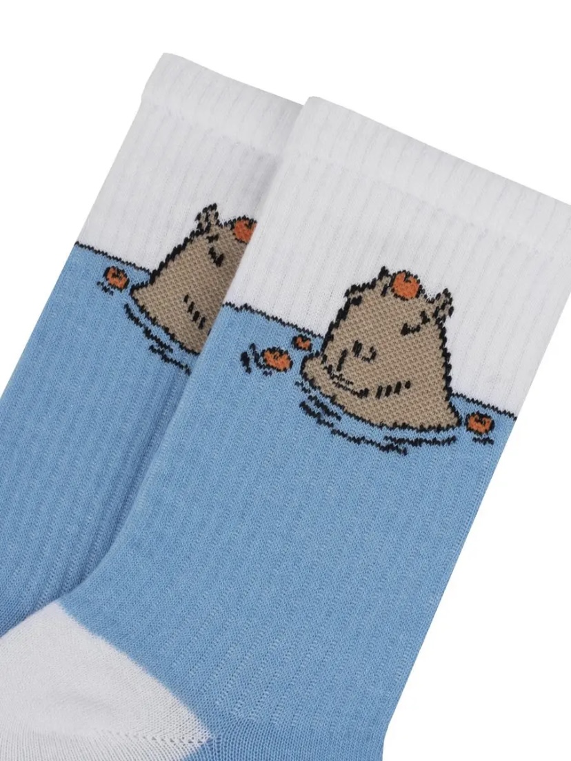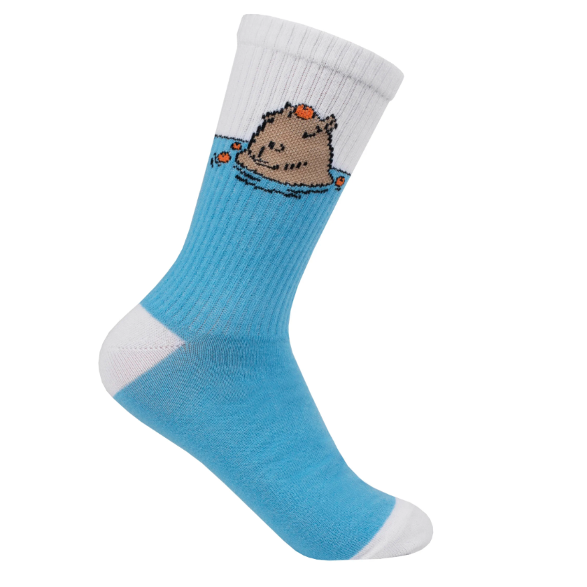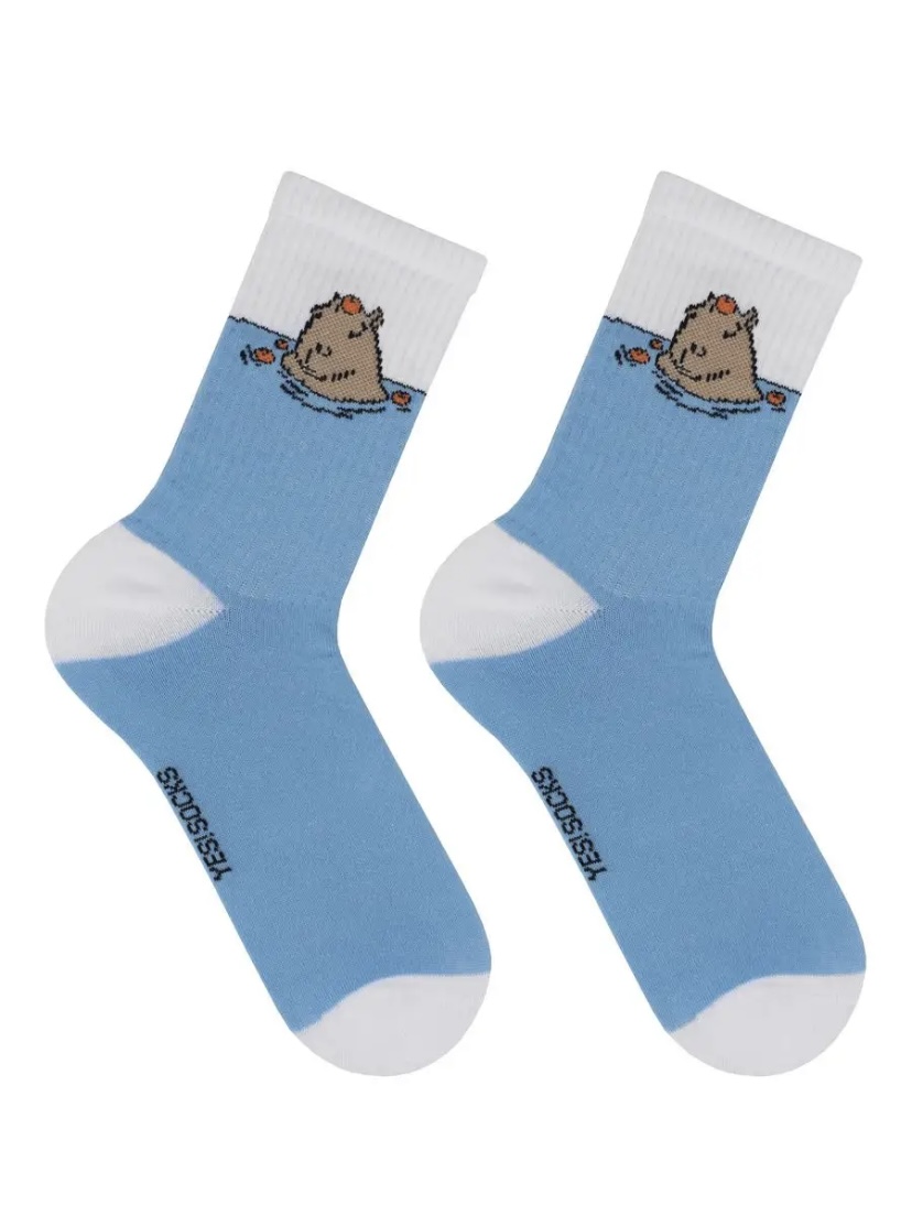 Голубые носки «Капибара Дзен» — стильный и забавный аксессуар для тех, кто ценит спокойствие и позитив.