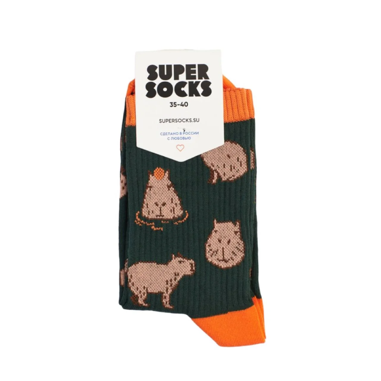 Носки «Капибара», темно-зеленые, р-р 35-40