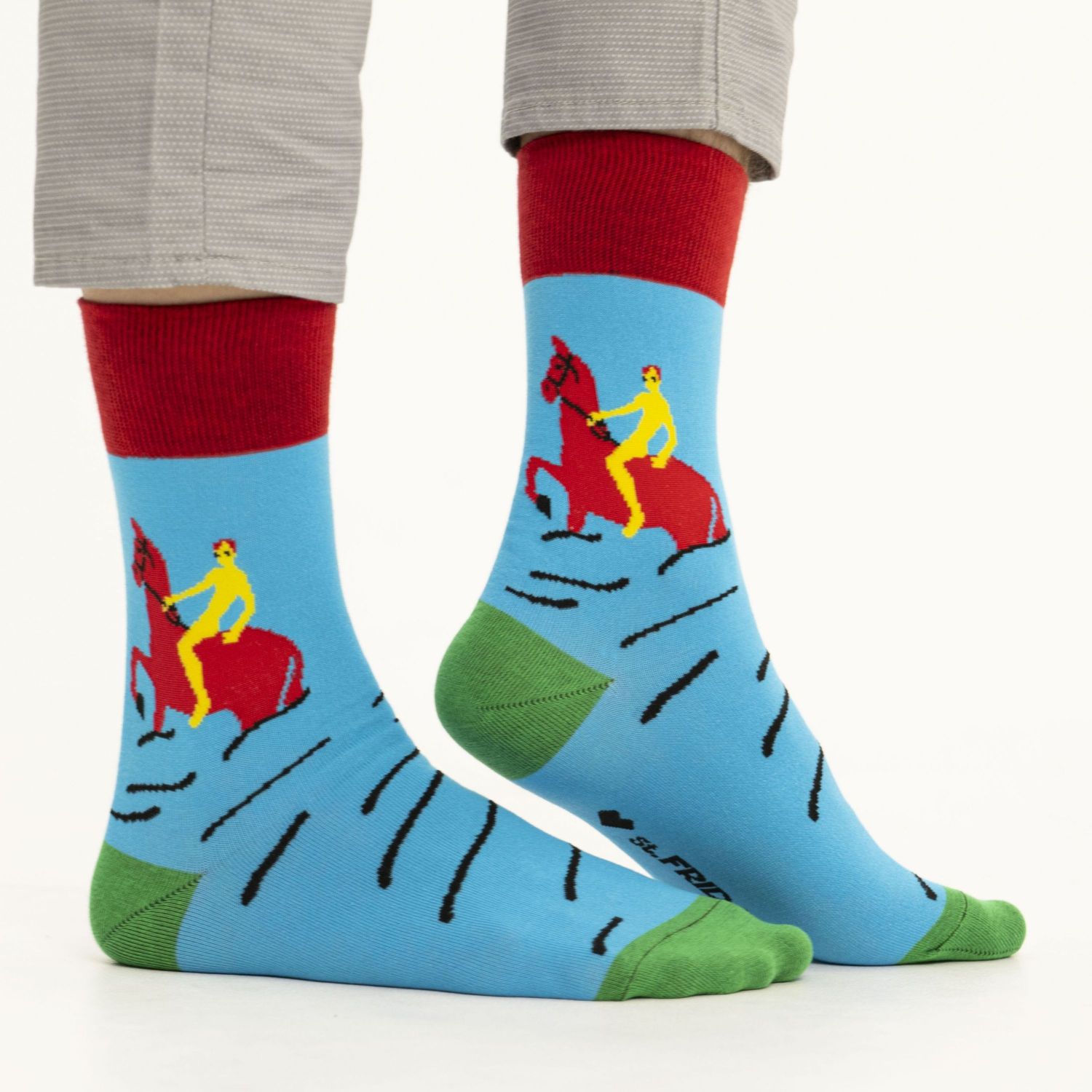 Мы понимаем, такие мечты, даже если их уже реализовал гений, просто так из головы не уходят. Поэтому пусть об этом напоминает адаптированная нами для вашей будущей пары носков картина Кузьмы Петрова-Водкина “Купание красного коня” из совместной коллекции с Государственной Третьяковской галереей.