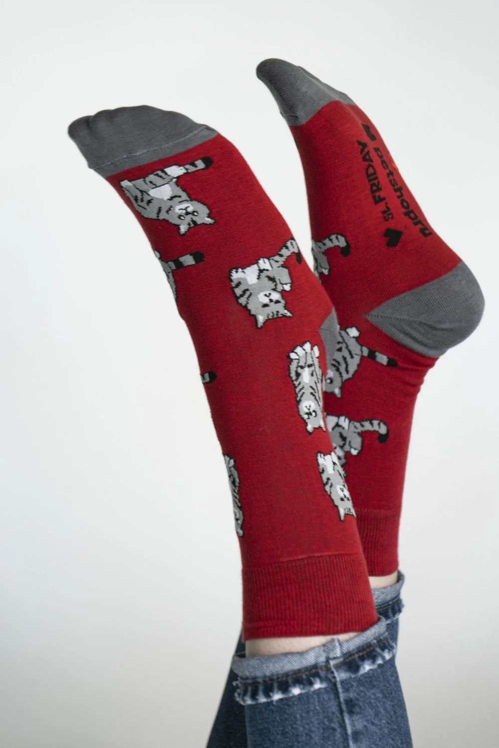 Носки красного цвета (а точнее бордовые носки) с ироничным названием “Десяток килограмм  Великой Британии” - часть совместного с Petshop.ru благотворительного проекта “Мир, дружба, лапки!”. Основная цель проекта – привлечь внимание к проблеме бездомных животных и оказать поддержку приютам, чьи подопечные ищут любящую семью. В проекте приняли участие двенадцать приютов из Москвы, Санкт-Петербурга, Екатеринбурга, Перми, Казани, Ростова-на-Дону, Архангельска и Калуги. Часть прибыли от продажи коллекции мы потратим на нужды приютов-партнеров.