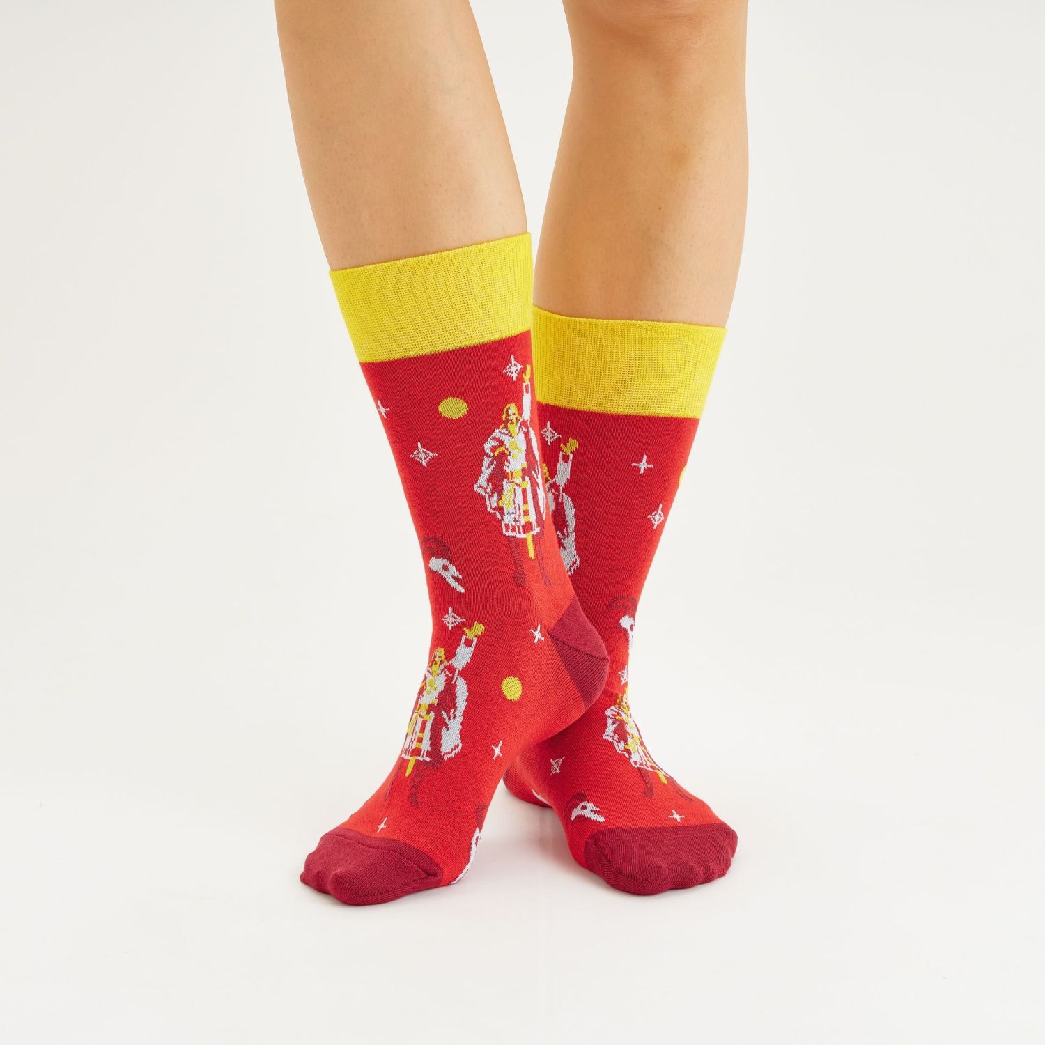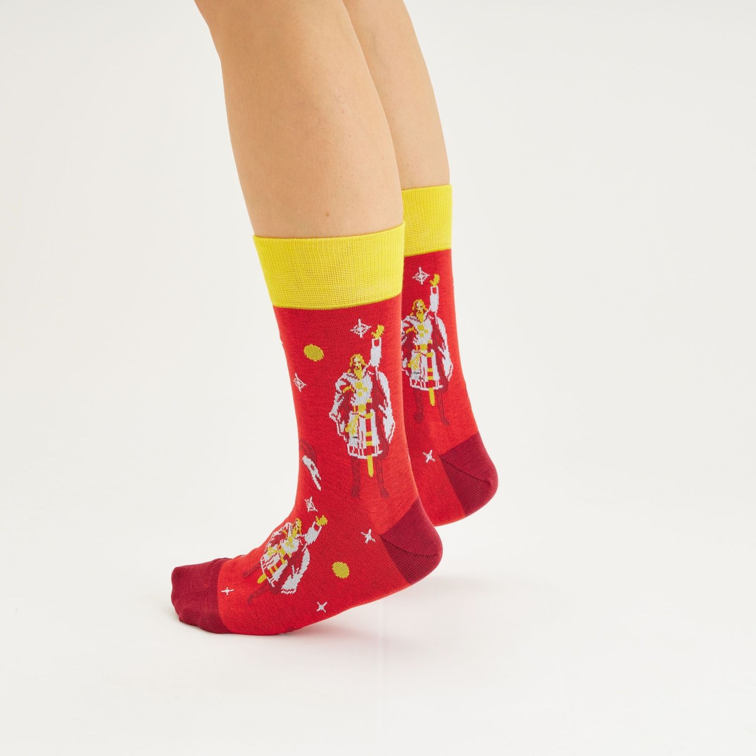 Монументальные полотна, демонстрирующие легенды и мифы о жизни славян, переосмыслены в принципиально новую форму. Теперь фантазийные сюжеты можно лицезреть на хлопковом холсте за пределами музейной экспозиции. Носки с героями ведических историй времен Древней Руси теперь не быль, а реальность.