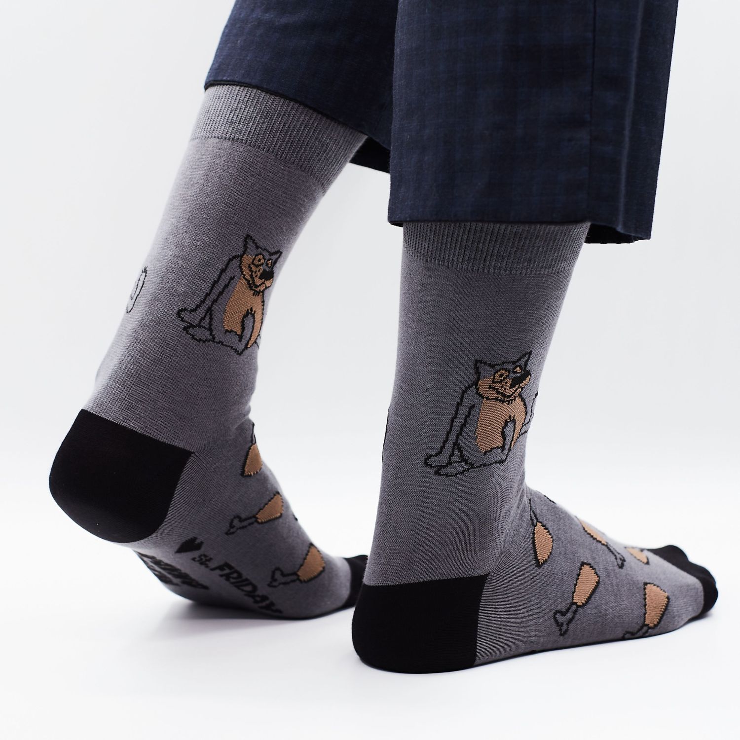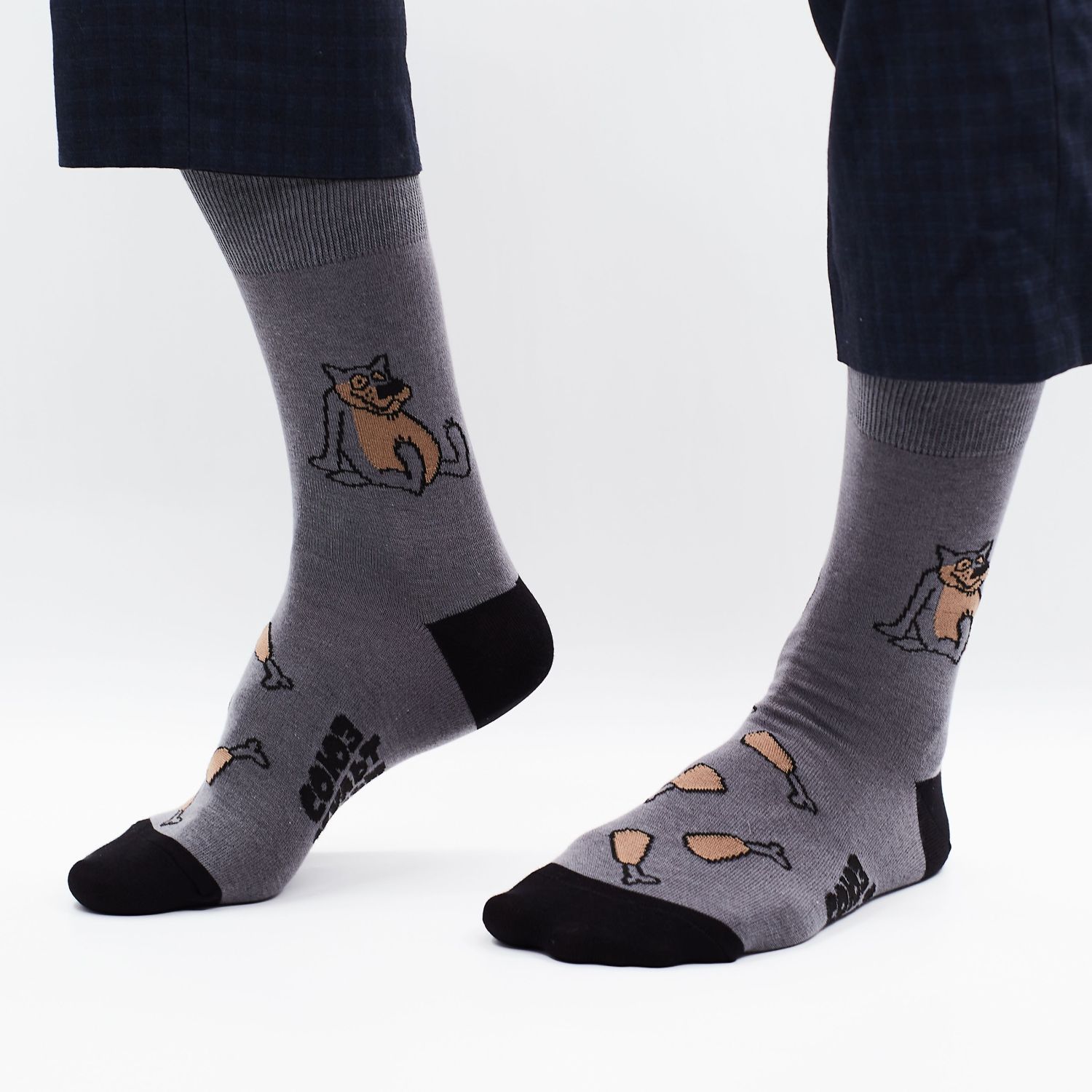 Серые дизайнерские носки с волком из мультика сделаны в коллаборации с киностудией “Союзмультфильм”, чтобы у вас была возможность носить любимых героев детства не только в сердце. Носки послужат прикольным подарком друзьям и близким, независимо от того, понимают они отсылку к “Жил-был пёс” или нет.