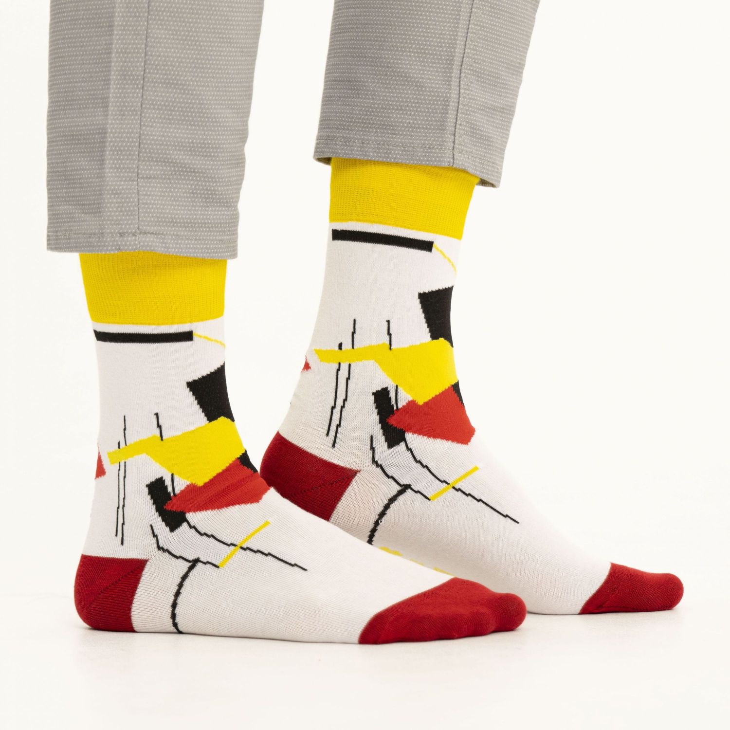 В свое время, художник издал манифест, в котором провозгласил принцип "искусство как самоцель". Мы вторим ему и заявляем: носки являются частью искусства. Особенно такие яркие, геометричные, как эта модель, выпущенная в сотрудничестве с Третьяковкой.