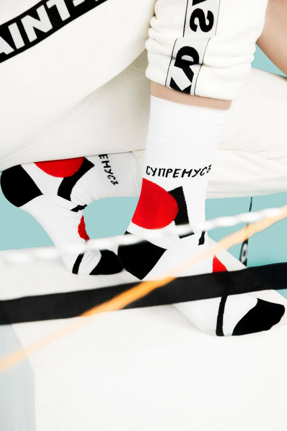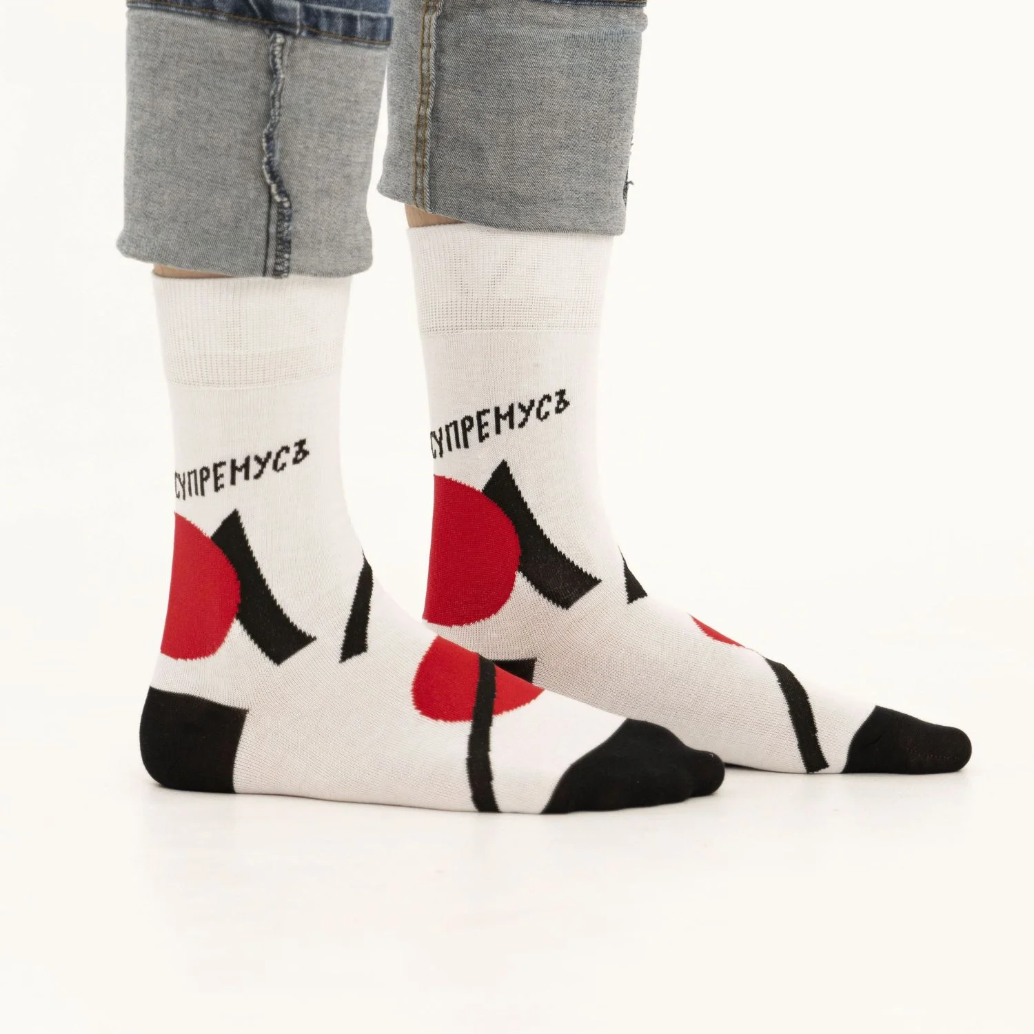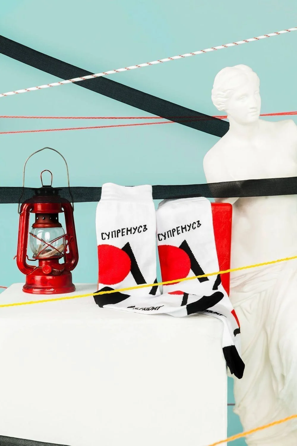 Эта модель, вошедшая в лимитированную серию в коллаборации с Третьяковской галерей, графическая фантазия наших дизайнеров St.Friday Socks на темы русского авангарда и супрематизма. Название, вывязанное на носках, отсылает к одноименному обществу художников-авангардистов, существовашее в начале 20 века.