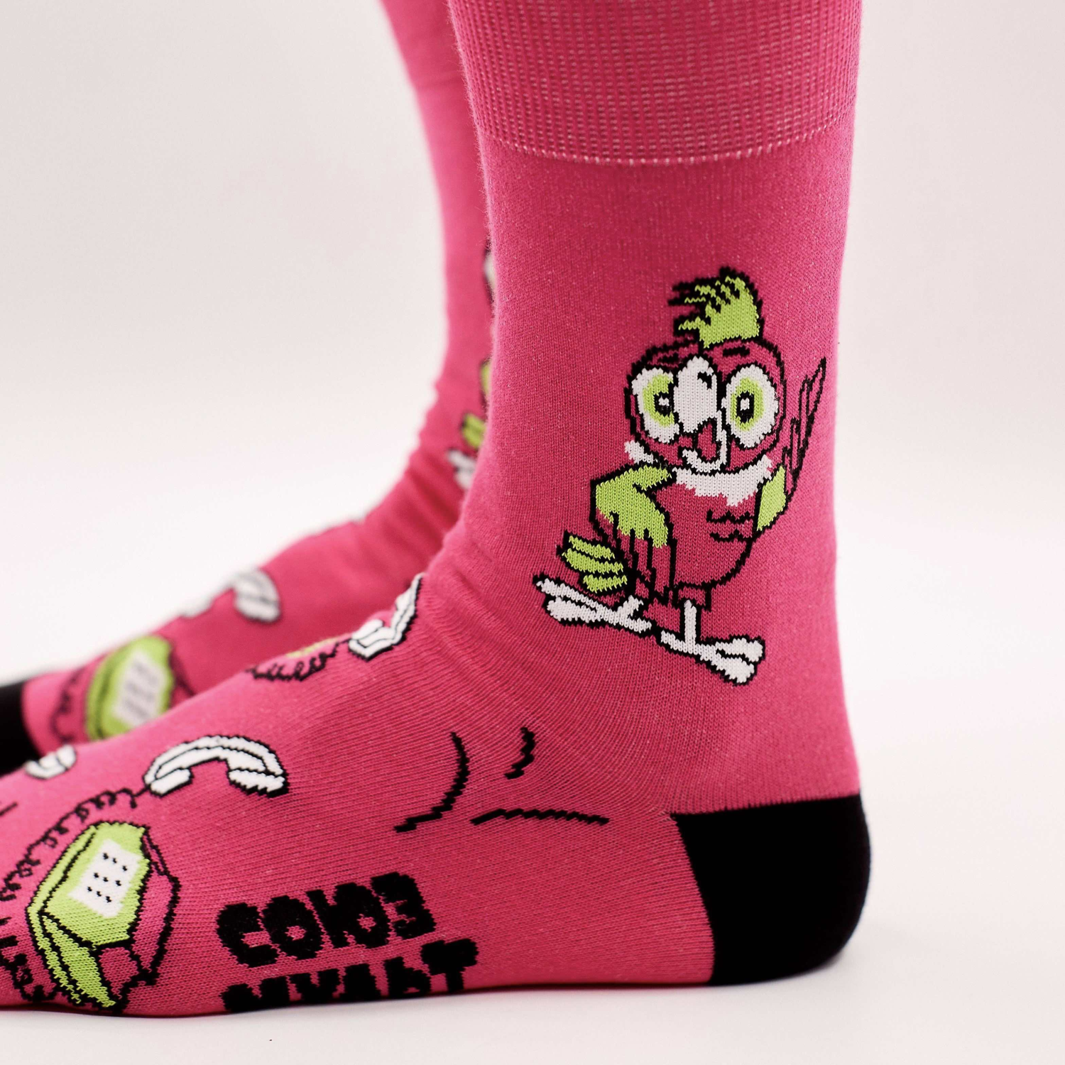 Одна из прелестей ностальгии — её аудиальность. Сложное слово, но вы поняли, типа видишь картинку и сразу вспоминаешь соответствующий звук. Так вот на этих носочках изображен Кеша, чей бунтарский окрас сразу включает в голове клич “Свободу попугаям!” Если у вас не так — значит ваше детство прошло в незнакомые нам времена где-то далеко от культурного пространства России.