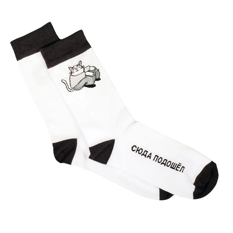 Носки от бренда Barking store с забавным принтом «Сюда подошёл». Эти носки отличаются минималистичным дизайном и высоким качеством.