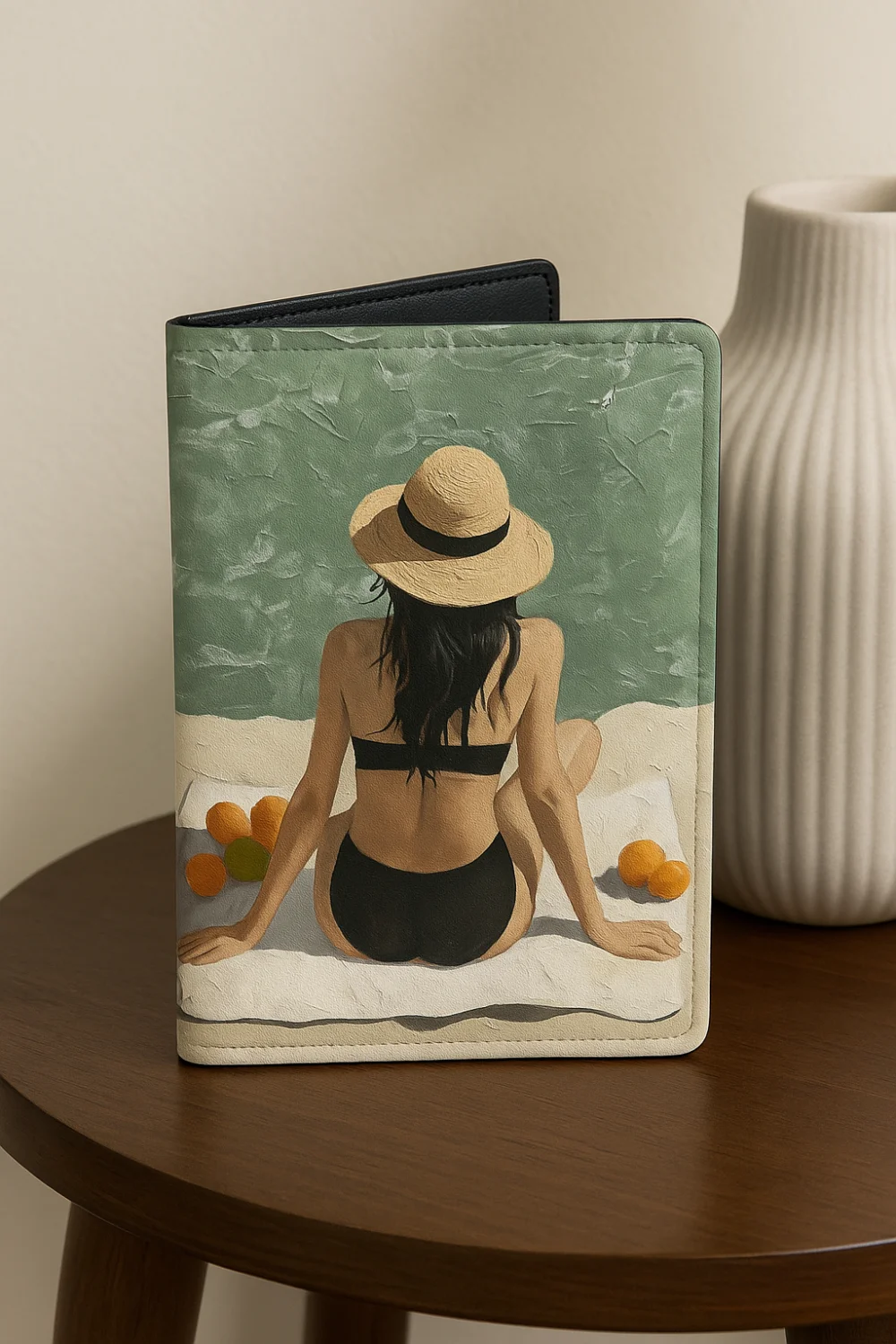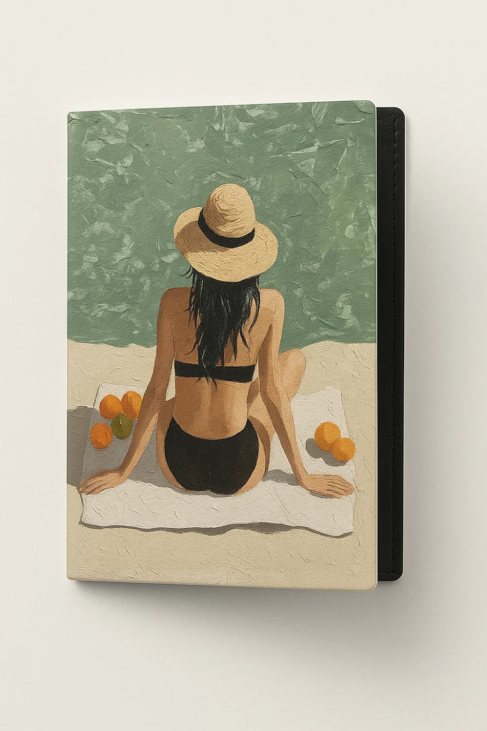 Эта яркая обложка с изображением девушки на пляже привнесет летнее настроение в каждую поездку. Изготовленная из прочного и легкого материала, она защитит ваши документы от износа и влаги.