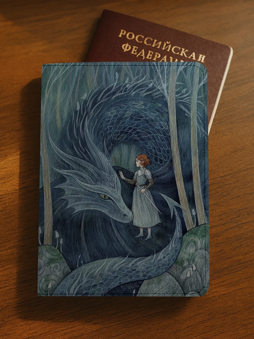Обложка на паспорт «Дракон и девушка», Спешилова Анна