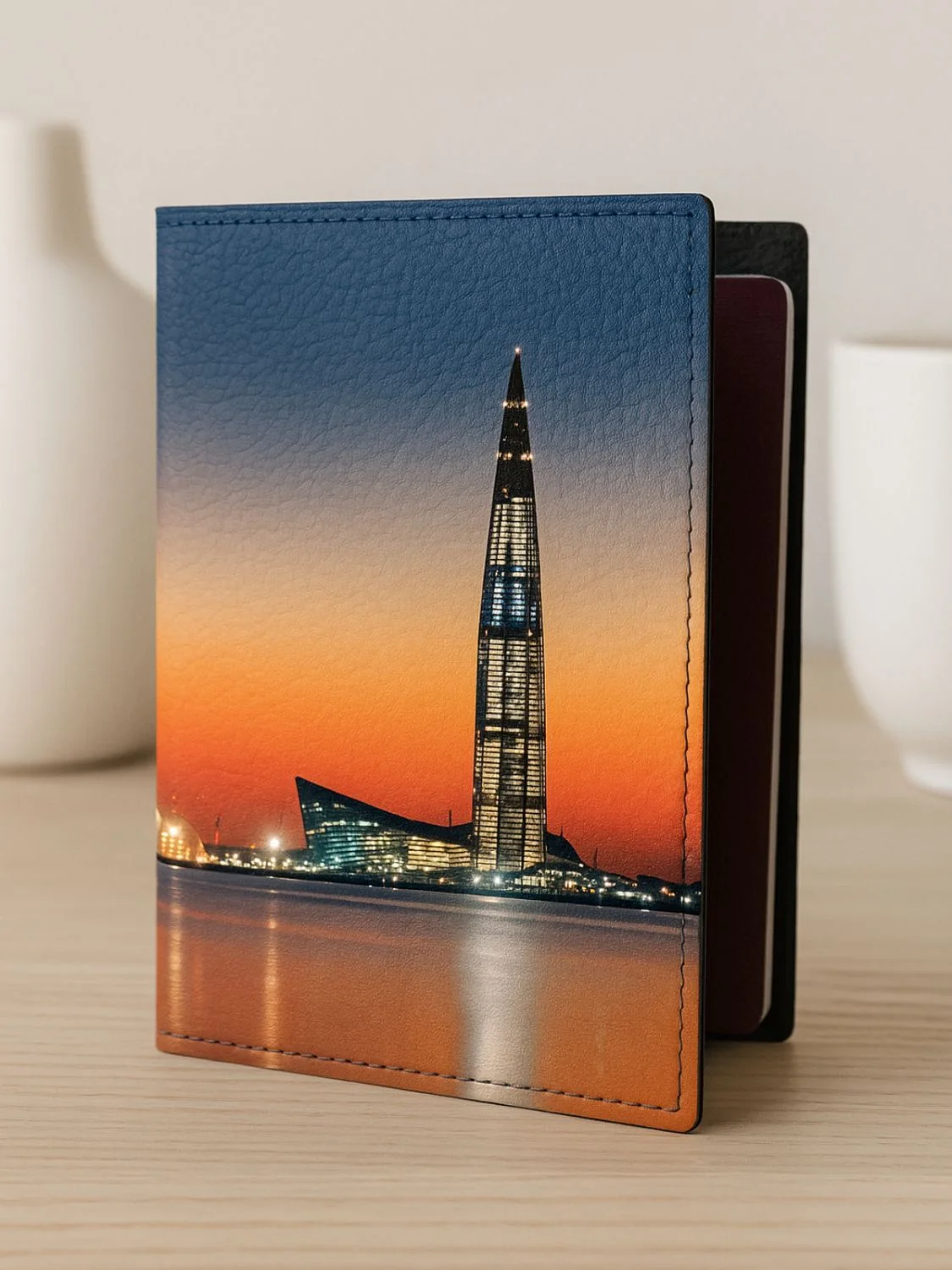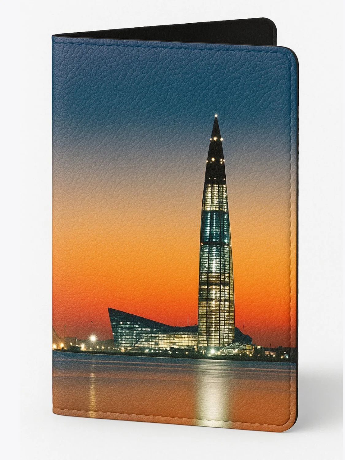 Открывайте для себя новые горизонты с нашей стильной обложкой на паспорт, украшенной величественным изображением Лахта Центра — символа современного Санкт-Петербурга.