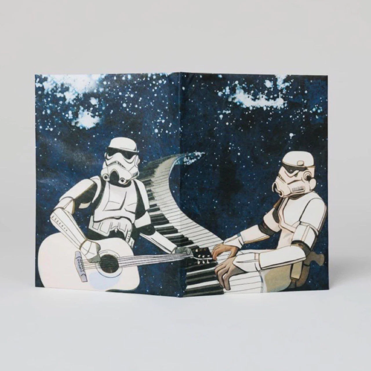 Обложка с таким дизайном — одна из самых популярных в коллекции, и это неудивительно, ведь все мы любим «Звёздные войны» и музыку. Штурмовики, которые устроили концерт, напоминают о нашей любимой группе Daft Punk. Автор идеи и создатель рисунка, Анна Рольская, напоминает нам о том, что все любимые вещи могут сочетаться в одном предмете, а значит, нет предела мечтам и вечным поискам идеала.