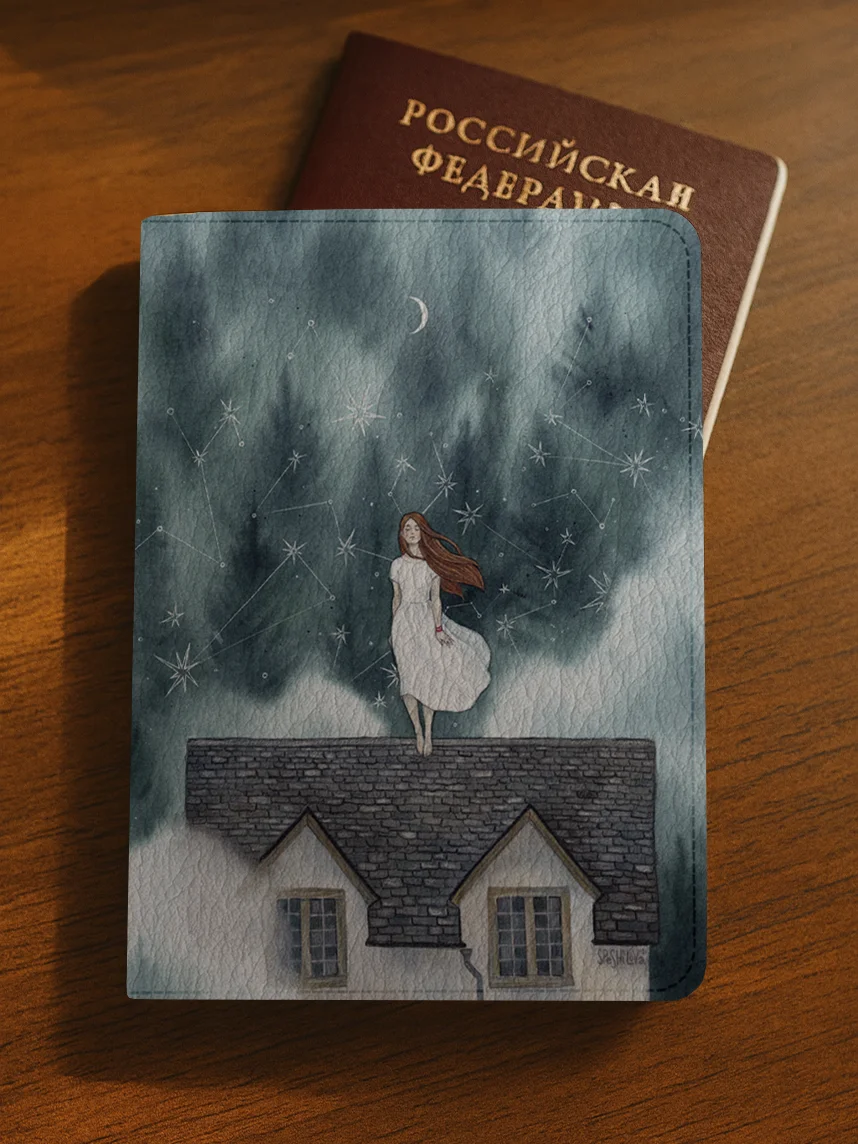 Эта обложка на паспорт украшена авторским рисунком художницы Анны Спешиловой и выполнена из качественного кожзама. Рисунок не стирается и сохраняет свою яркость на протяжении долгого времени.
