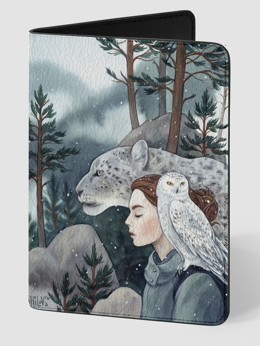 Обложка на паспорт «Снежный барс, сова и девушка», Спешилова Анна