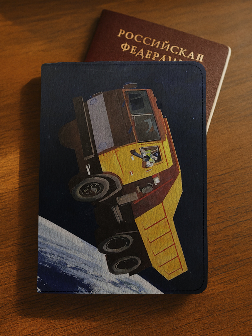Обложка на паспорт с машиной в космосе «Техноромантика», художник Василий Аникин - эксклюзивный продукт, доступный только в нашем магазине.