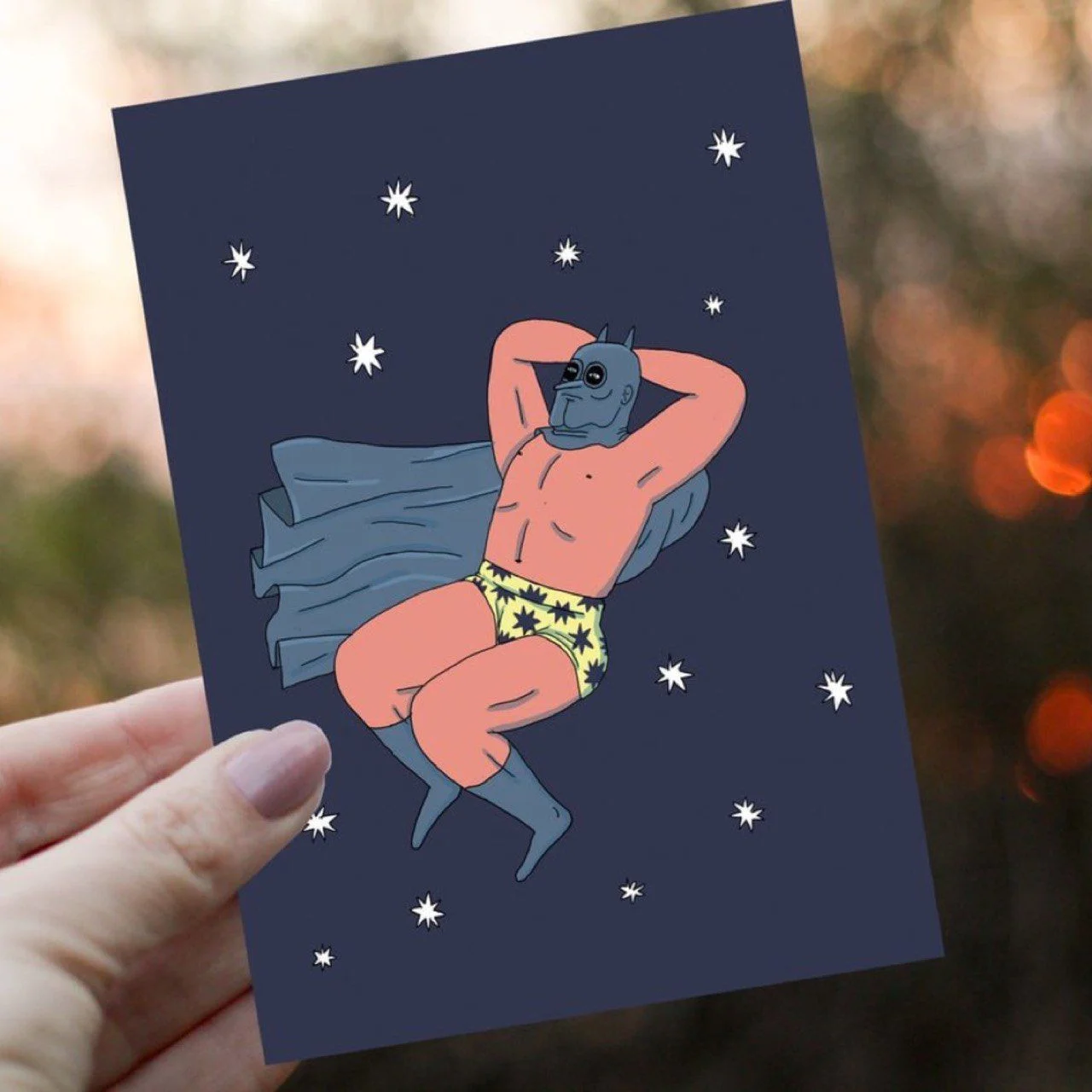 Открытка «Бэтмен», художница из Санкт-Петербурга Валя Карнавалова.