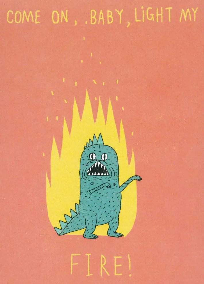 Открытка «Come on, baby, light my fire!», художница из Санкт-Петербурга Валя Карнавалова.
