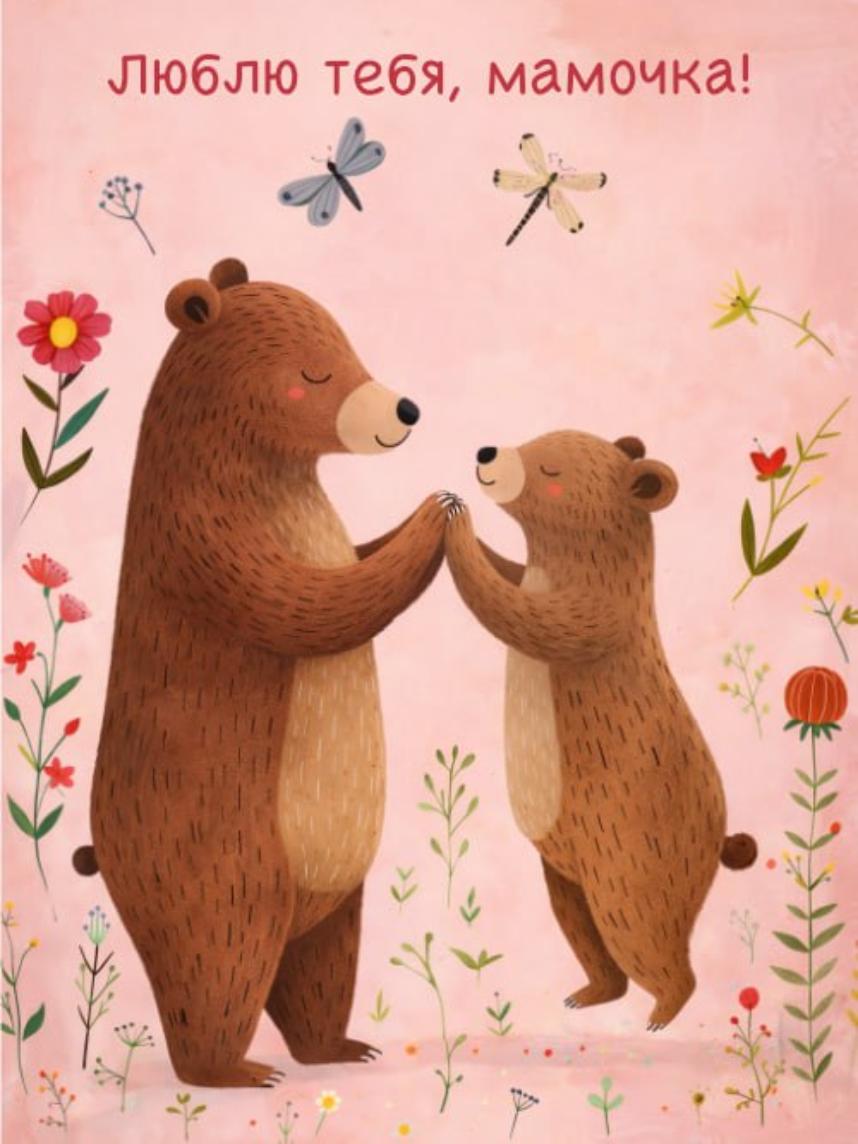 Авторская открытка с медведями и надписью «Люблю тебя, мамочка!», А6