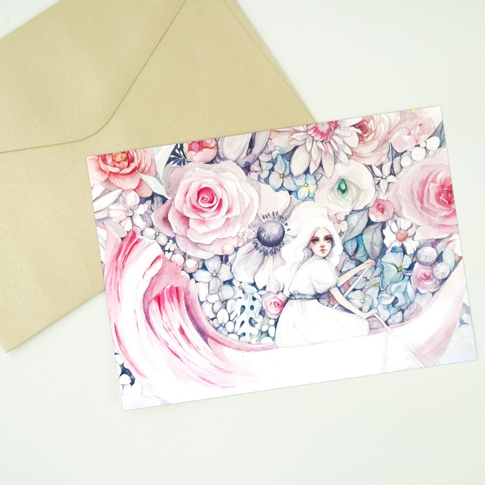 Открытка Оксана Викторова «Девочка в лодке», односторонняя