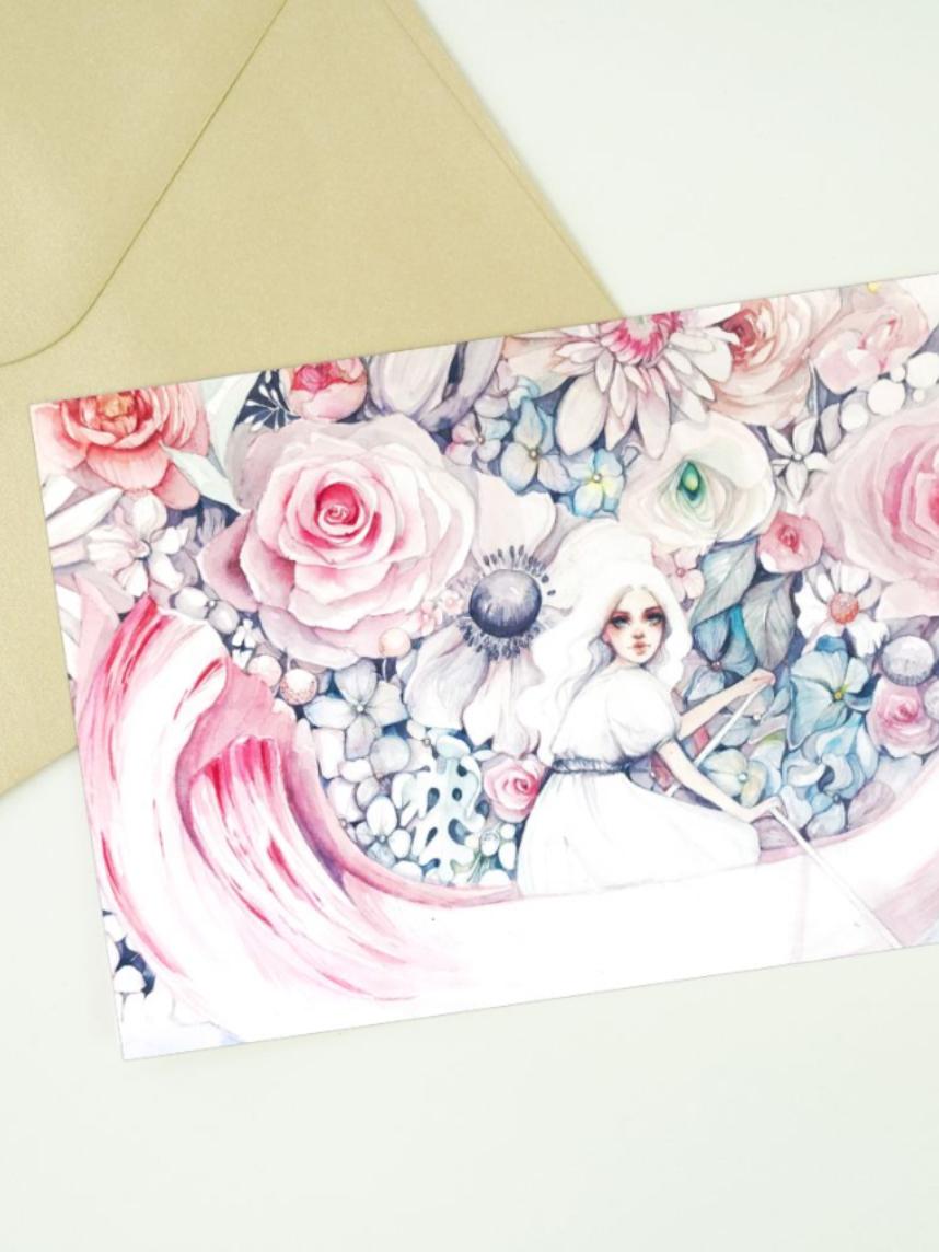 Авторская открытка стандартного почтового размера: 105*148 мм. Иллюстрация создана талантливой художницей Оксаной Викторовой. На обратной стороне есть свободное место для подписи. Открытка упакована в индивидуальный крафтовый конверт. Печать выполнена на картоне плотностью 300 г/м. Открытка односторонняя, не открывается.