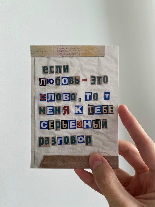Открытка «Если любовь — это слово, то у меня к тебе разговор» выполнена в коричневом цвете формата А6 — уютная и тёплая.