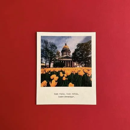 Открытка Подписные изделия «Исаакиевский собор, тюльпаны. Фото полароид»