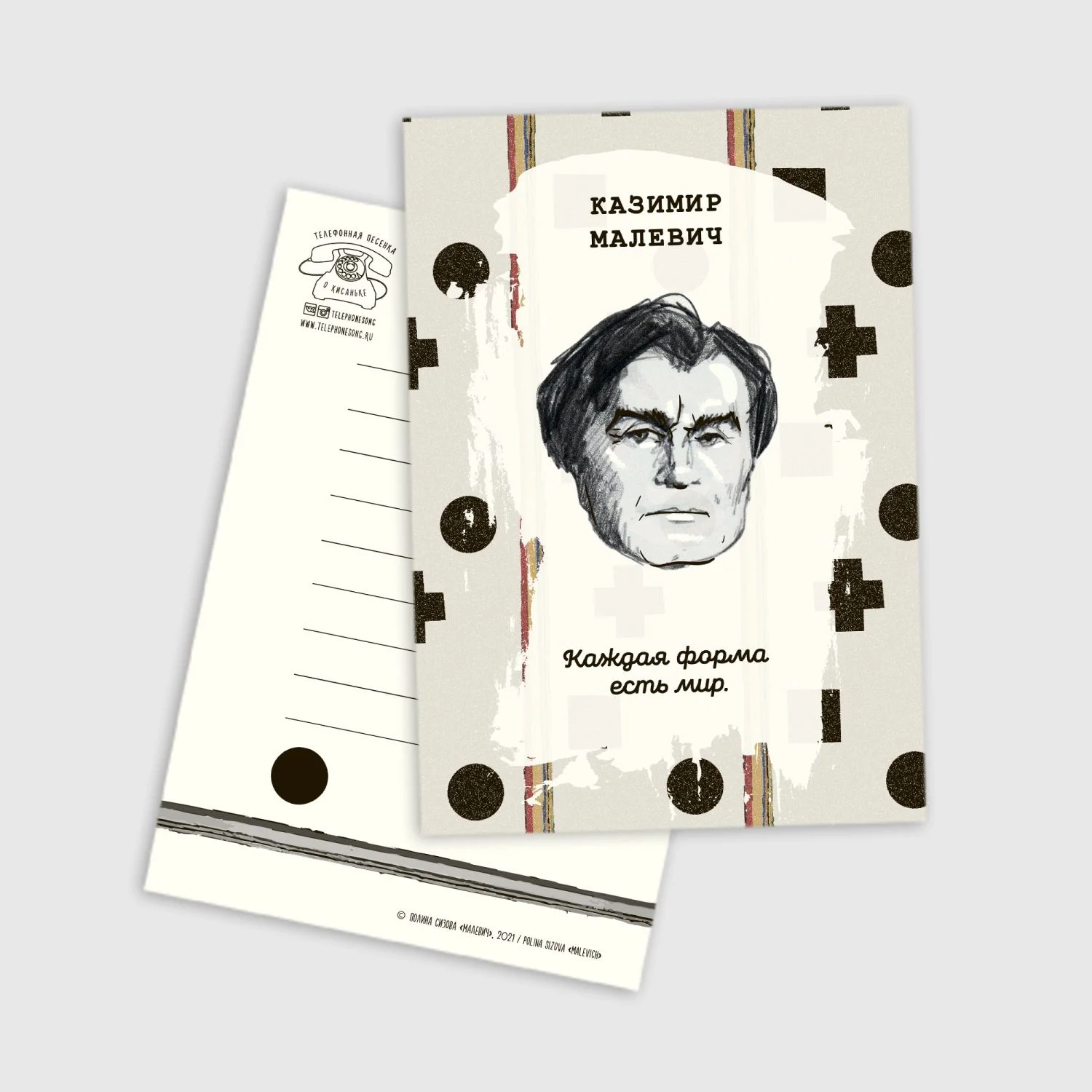 Открытка с цитатой художника Казимира Малевича: "Каждая форма есть мир". Размер 10х15 см, печать на плотном картоне. Открытка бережно упаковывается в крафтовый конверт. Оборот открытки матовый: смело пишите ручкой и не бойтесь, что пожелание размажется. Есть разлинованное место для подписи и место для наклеивания марок.